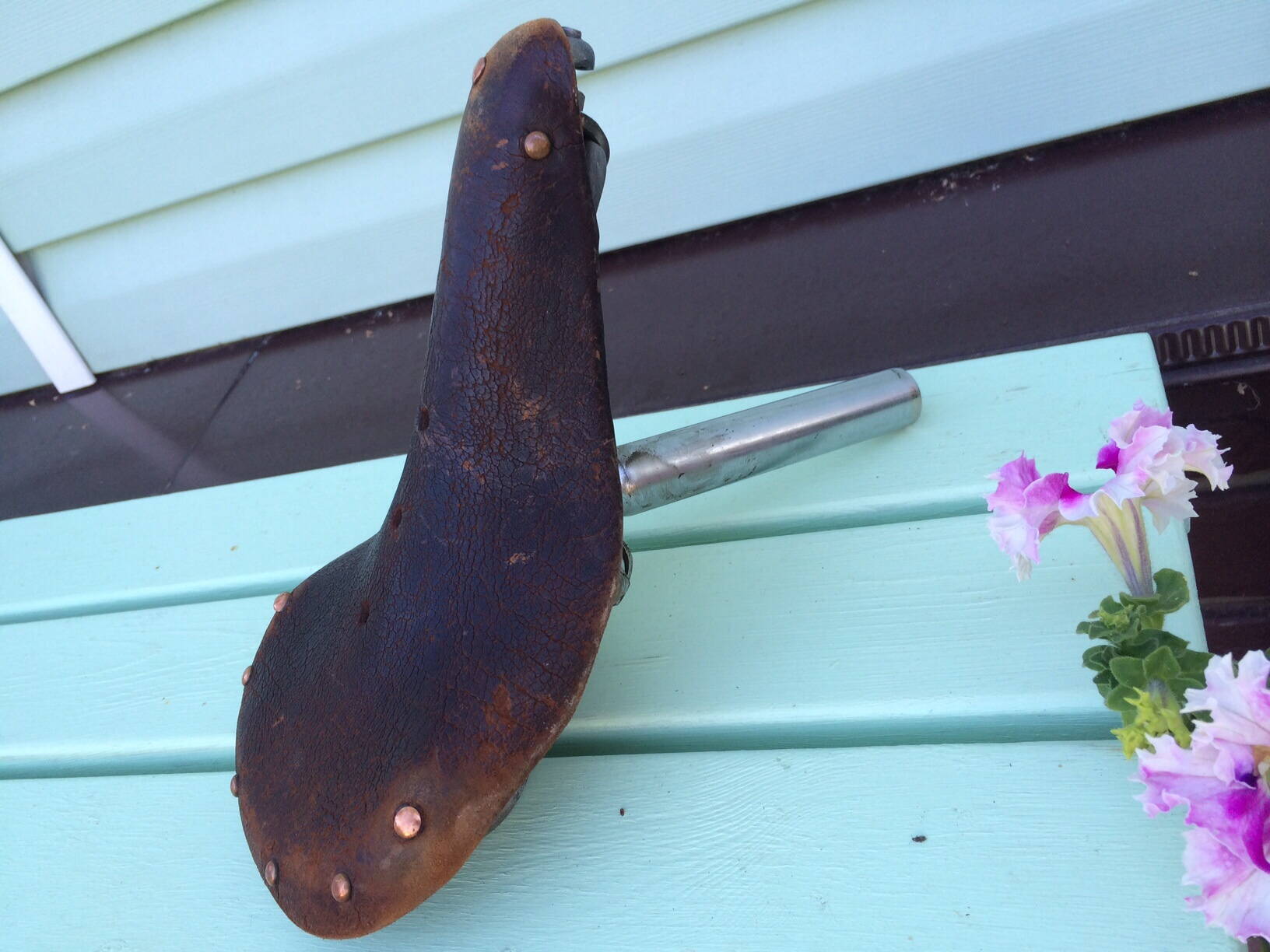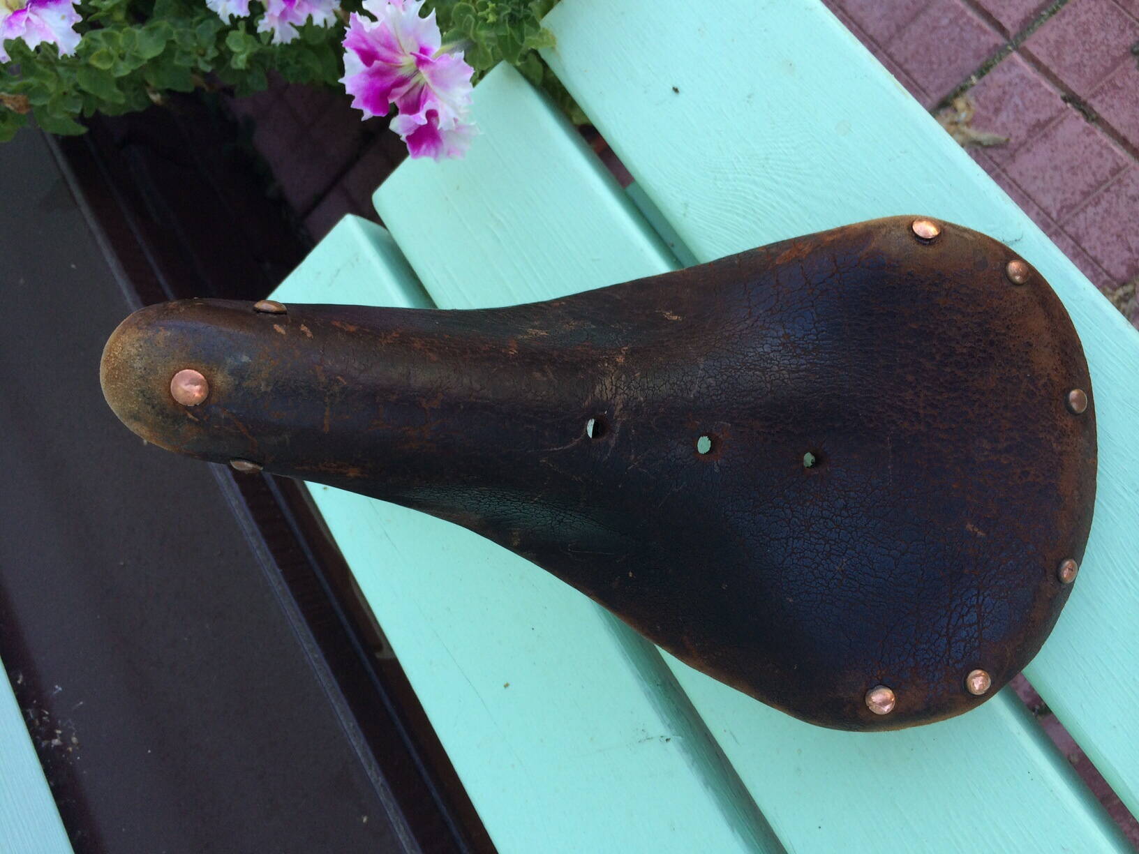 Для В-555 такое седло, внешне не очень, надо будет реставрировать, причем это именно то седло, что стояло на этом велосипеде. Заклепки медные.