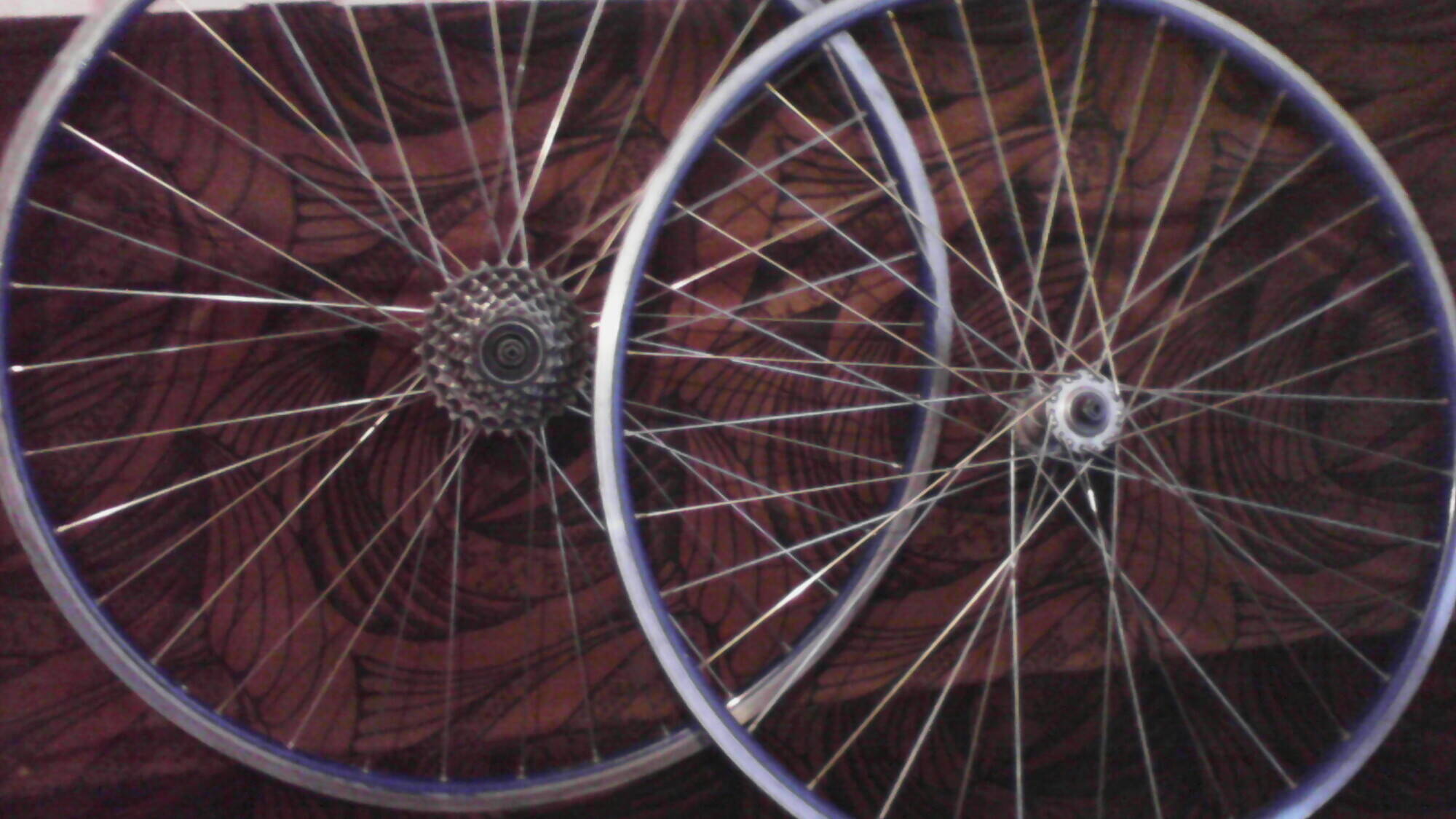 пестонированые обода без названия, 28 дюймов, 36 спиц, передняя втулка хвз сз, задняя кампаньёла, состояние втулок отличное, всё на шариках под эксцентрики, эксцентрики не дам самому надо.