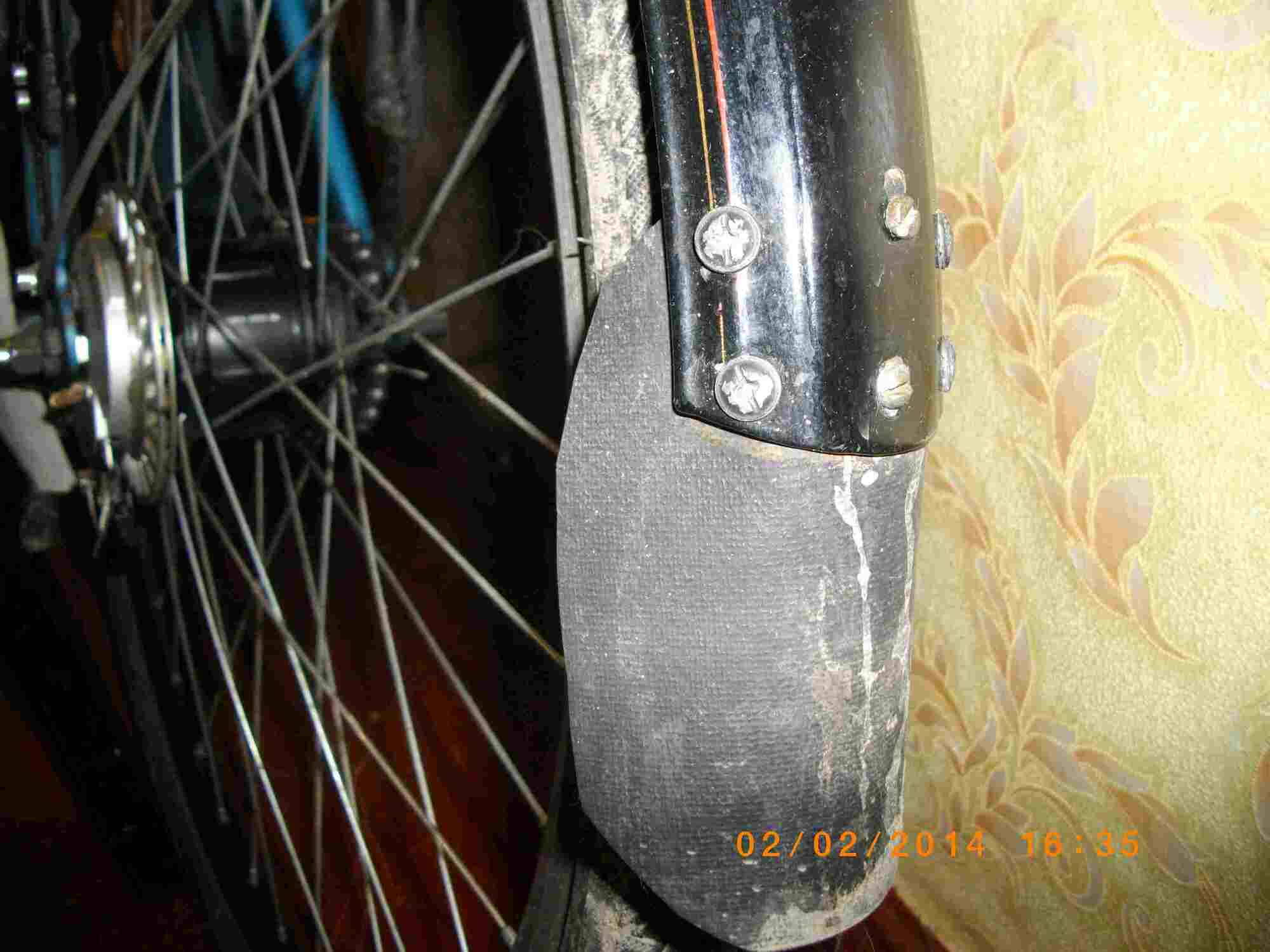 Можно решить проблему, вырезав из тонкой резины шматок каплевидной формы и закрепить его на брызговике по принципу козырька. Он будет и аккуратно смотреться, и добавит длины крыльям, и без ущерба сминаться-распрямляться без колеса: