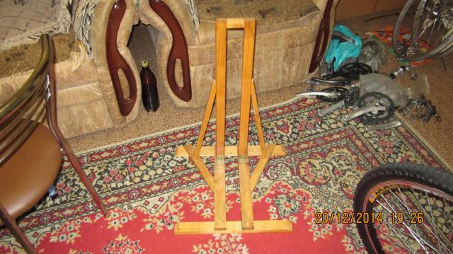 Я, сделал себе деревянную складную стойку в 2010 году (серая), как я её собрал, подробности уже не помню. Главное стойка оказалась надежная и долговечная.