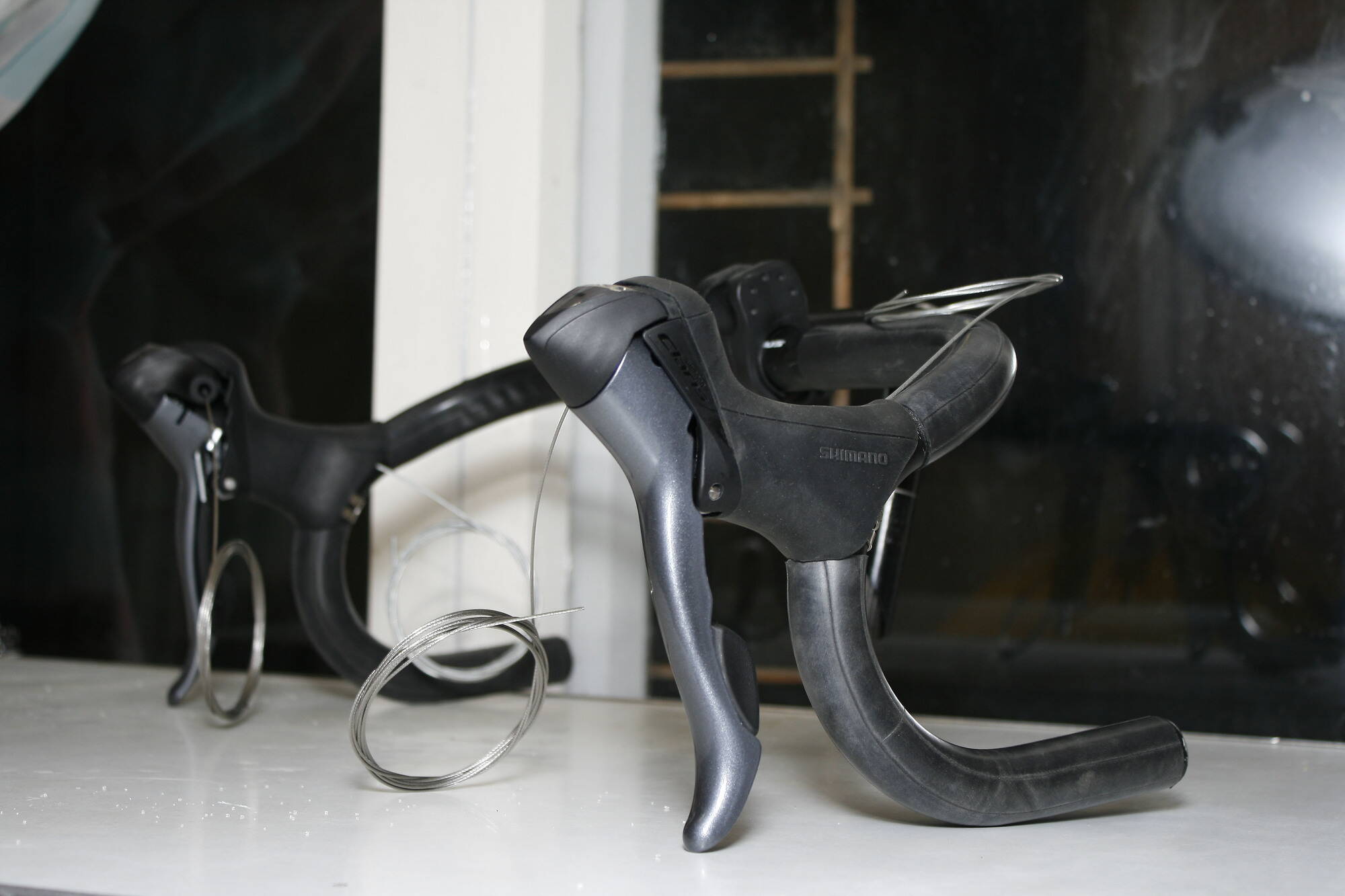 А пока то да сьо, приехали дуалы. Шимано Кларис 2х8 ск, на руль одел камеру. Предварительно установил пистолеты. Но пока не прокачусь - обмотку мотать не буду.