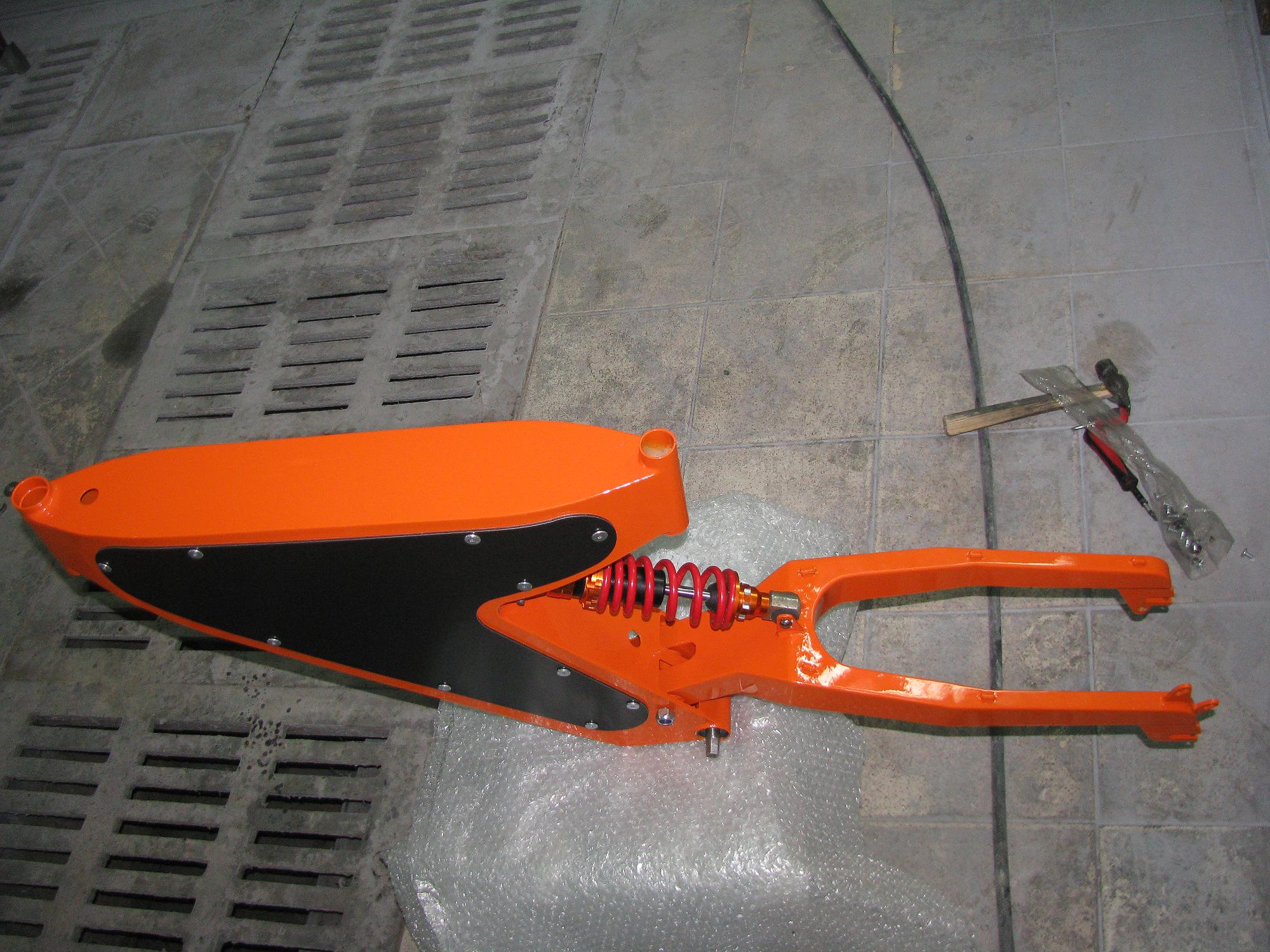 Красный амортизатор, что на фото, обычный масляный скутерный. Правда пришлось его немного допиливать :)