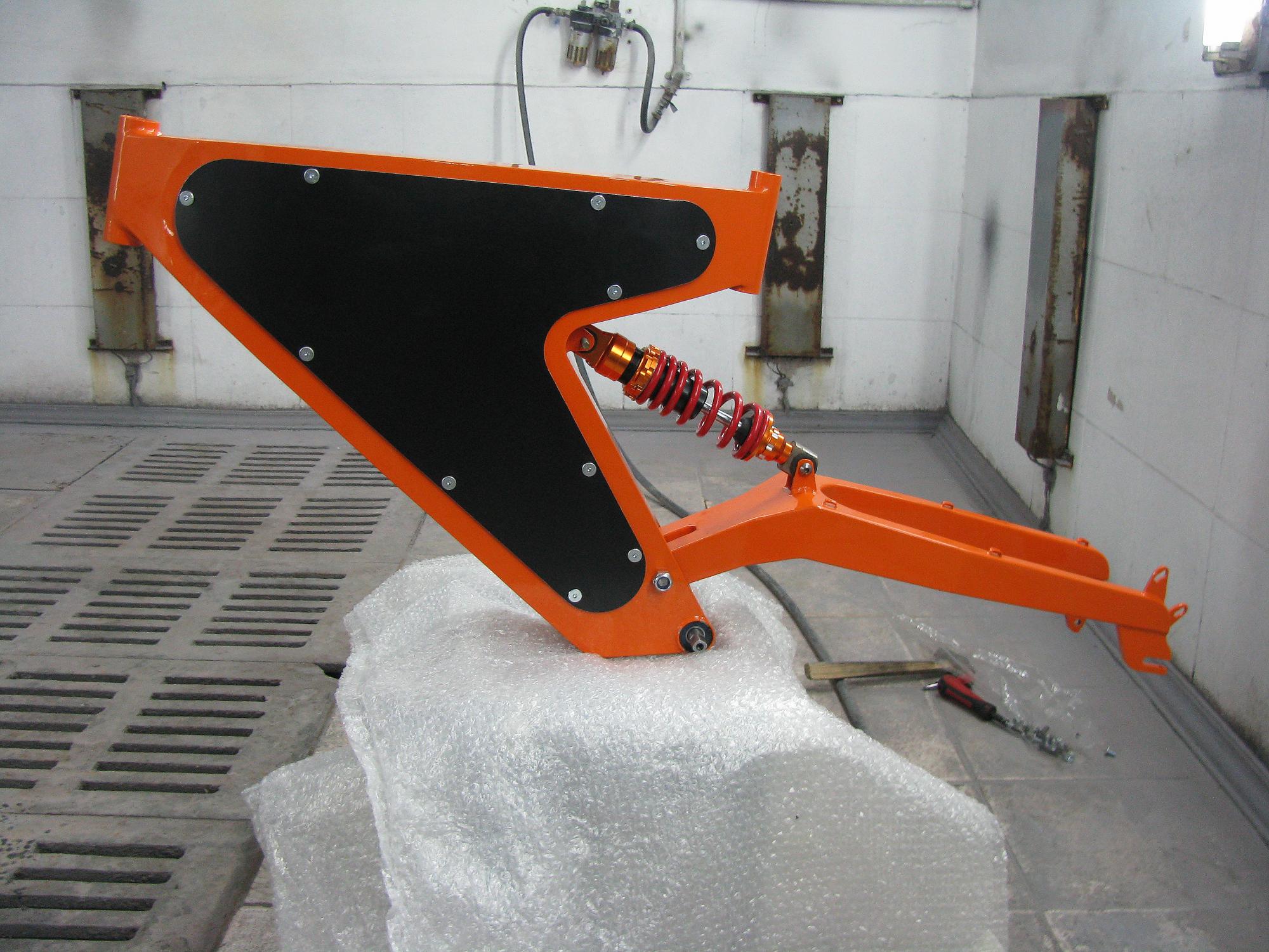 8 кг на раму - многовато. В итоге получается скорее скутер, чем велосипед. А огромная неподрессоренная масса сзади не позволяет сделать нормальную работу подвески. Аппараты на таких рамахначинаются с 40 кг. Короче, как для электроскутера - в самый раз. Для велосипеда можно было бы сделать вполовину легче, как минимум. Но не из стали.