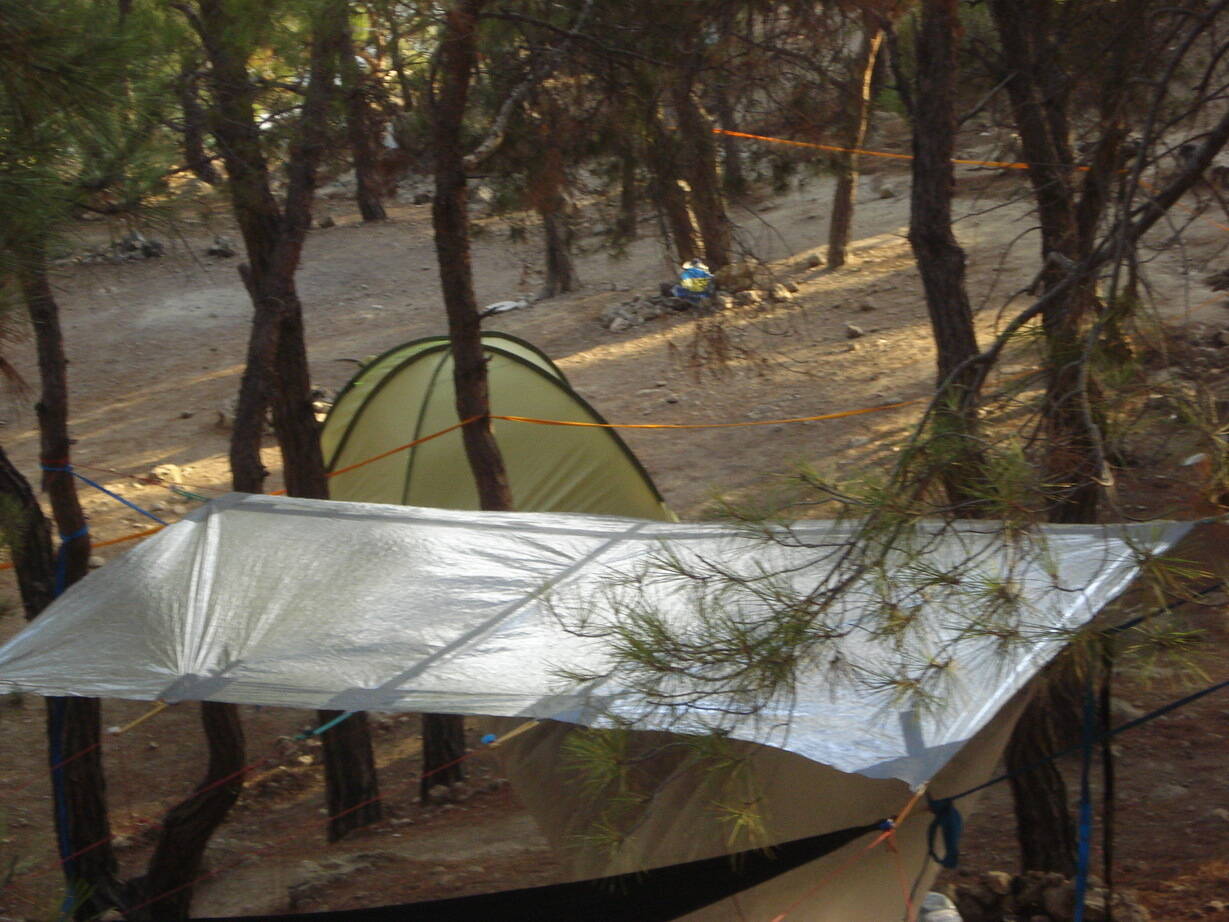 Кстати, тент очень заметен. Я стоял на Инжире, а тент был различим из Балаклавской крепости. В целом девайсом доволен. Единственная потребная доработка - подобрать более легкие резинки.