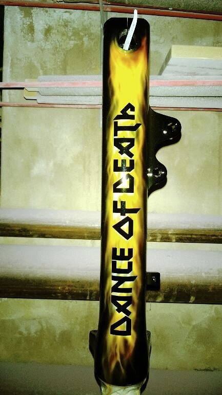 Выполняются любые виды покрасочных работ, начиная от пескоструйного снятия старой краски и завершая аэрографией по эскизам заказчика. Естественно, материалы для лакокрасочных покрытий подобраны для наилучшей эксплуатационной долговечности в любых погодных условиях. Краски и лаки однокомпонентные, не требующие запекания(ньюансы можно уточнить у мастера). Стоимость определяется индивидуально, в зависимости от сложности требуемых работ (для велосипедной рамы в пределах 100$). Аэрография выполняется мастером по боди-арту, совмещающей искусство рисования на телах с искусством нанесения самых разнообразных красочных элементов на металлическую поверхность(огонь, картины, символы и орнамент). Оборудование хорошее, малярный бокс чистый, что позволяет добиваться отличного результата покраски.