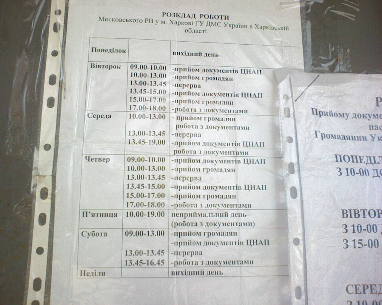 Теперь «помощь в оформлении» оказывают в 12 кабинете (он напротив 11), стоит она все те же 60 грн, но, как я понял, все так же можно обойтись. «Помощь в заполнении» теперь оказывают быстрее — потому, что сидит 2 человека. Причем там же помогают и по другим паспортным вопросам. Бланки чуть поменялись. Придумали «электронную очередь» (в час дня в четверг на дисплее были цифры порядка «25», в 15 часов очередь была примерно 3 человека), и в эту очередь ставит тетенька, которая проводит платежи через терминал.