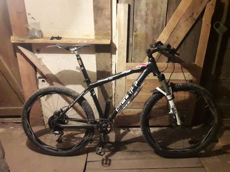 Розповідь продовжується, внаслідок сильного впливу на мозок високих технологій карбонобудування, яка підксилювалася гуркітом в одно вухо користі підвіса та в інше вухо навідомого почуття, що це дуже комфортно, було вирішено придбати раму скот спарк 30 2007 року, вага 1,850 кг, у травні 2012 року. Зрозуміло, що всі зап частини були взяті с хартейла скот скейл 15 2008 року, ще приводом придбання підвіса було дискомфорт в області хребта. Ітак вийшов такий агрегат, фото додається, вага була 10,4 кг на безкамерці. Це була ракета ще та, на грунтах можна було видавати на гора 35 км/год без болі, відверто кажучи дуже жалію, що продав цей агрегат. З абрейдів було тільки перехід на безкамерку та покри швабре рейсінг ральф та неопренові грипси.