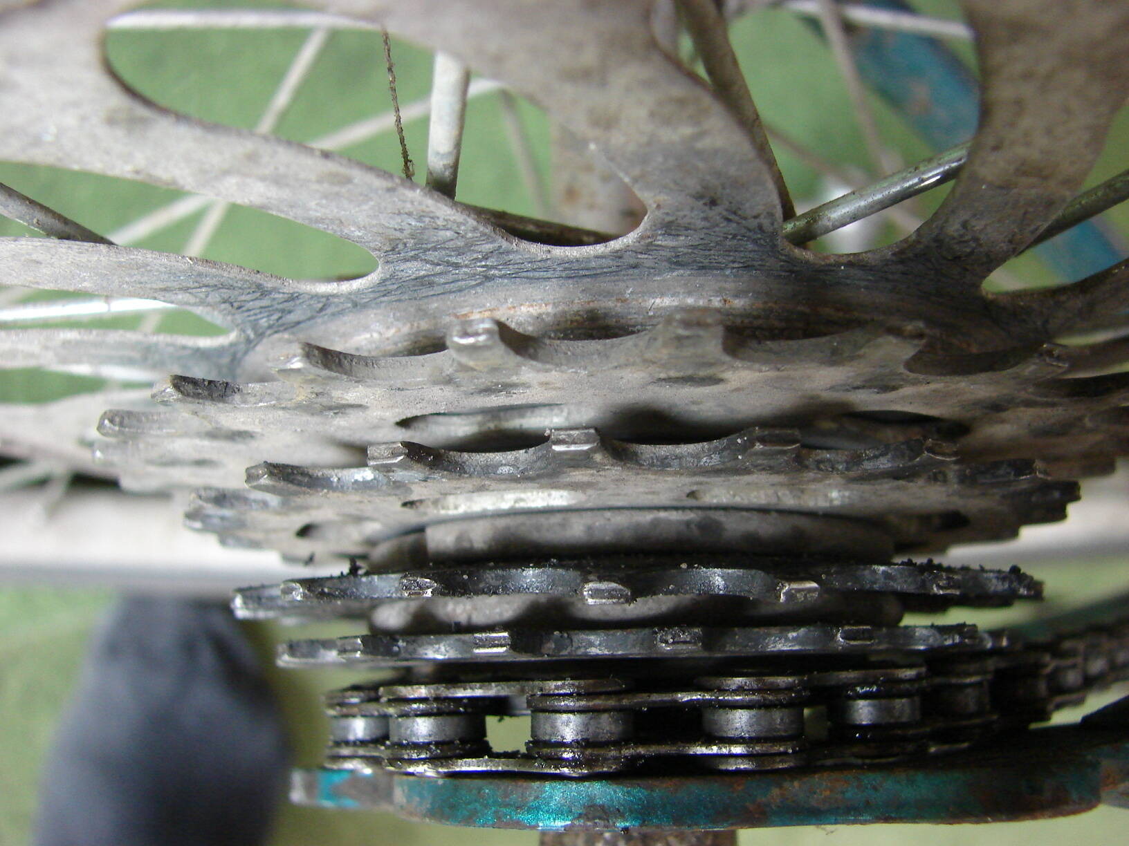 Рама ровная. Цепь мне вообще ремонтники отдали бесплатно. Может из за того что она была изношенная, вот и порвалась и погнула звезды? Мне ж как то на работу надо было доехать. Вот я и ехал со щелчками и слетами цепи. Утром уже обнаружил, что одно наружное цепи наполовину порвалось, вот цепь и растянулась и прыгала соскакивала