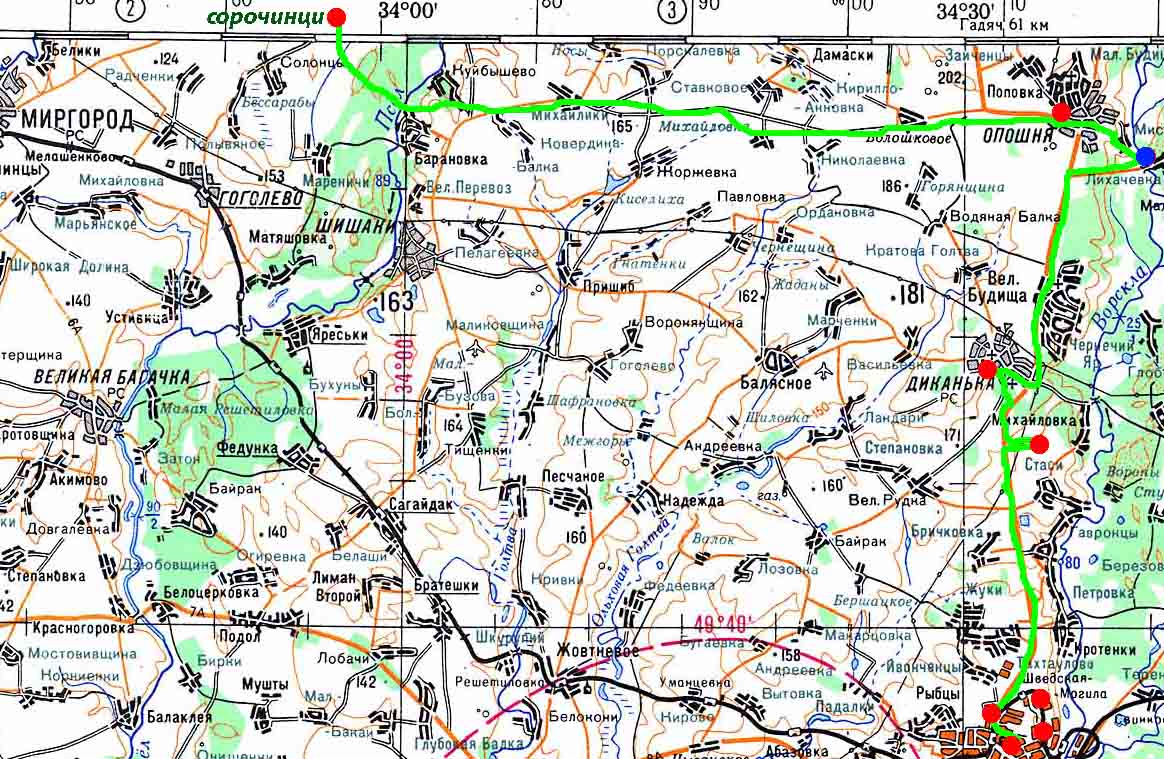 Маршрут: Вел. Сорочинци-Опошня-Диканька-Полтава