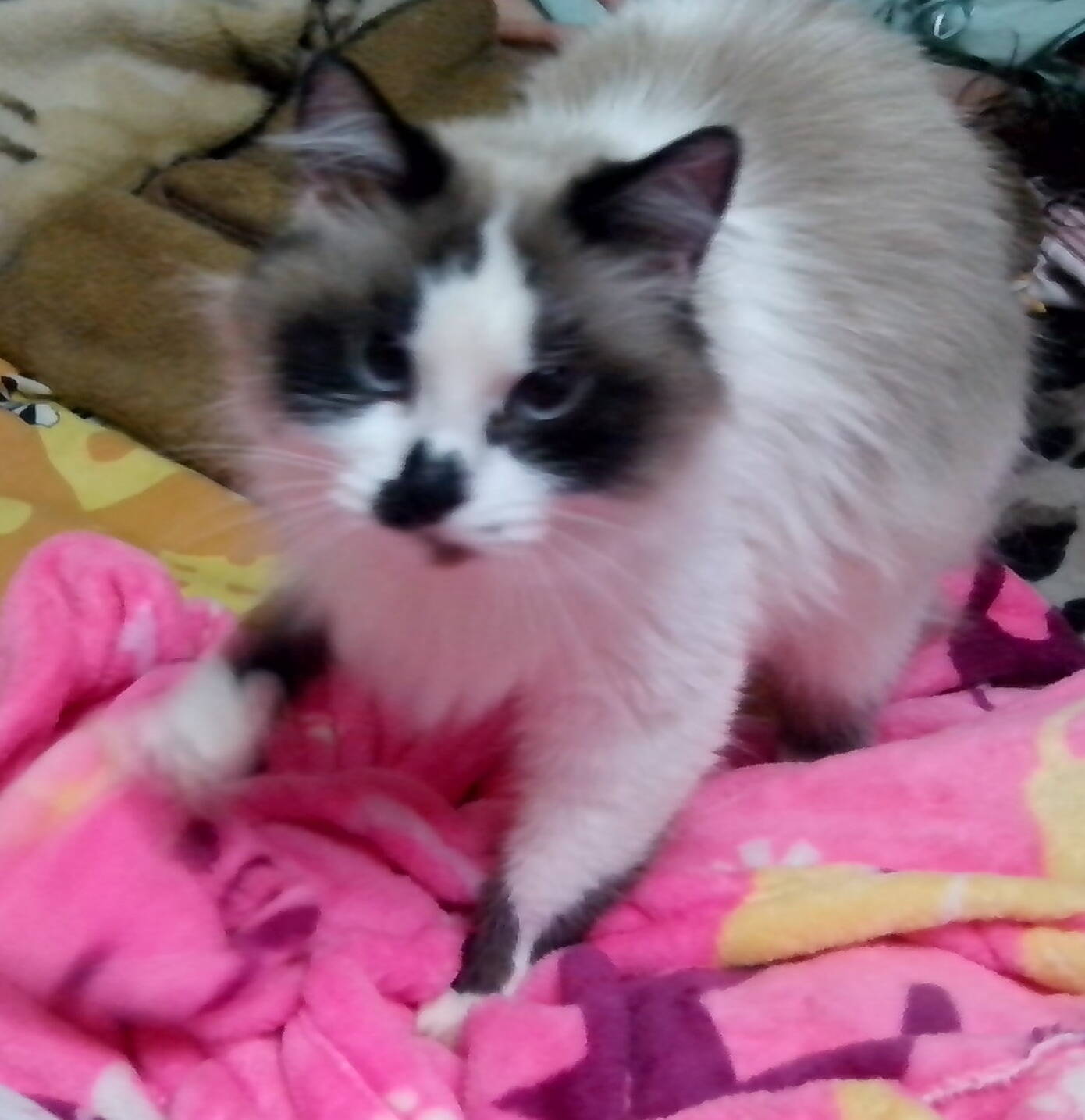 Кошка любит спать в кукольной коляске, теряет волю от розового цвета. Если видит розовое покрывало, тут же на него ложится и начинает делать лапами массаж покрывалу. Глаза при этом на переносице и мурчит от удовольствия.