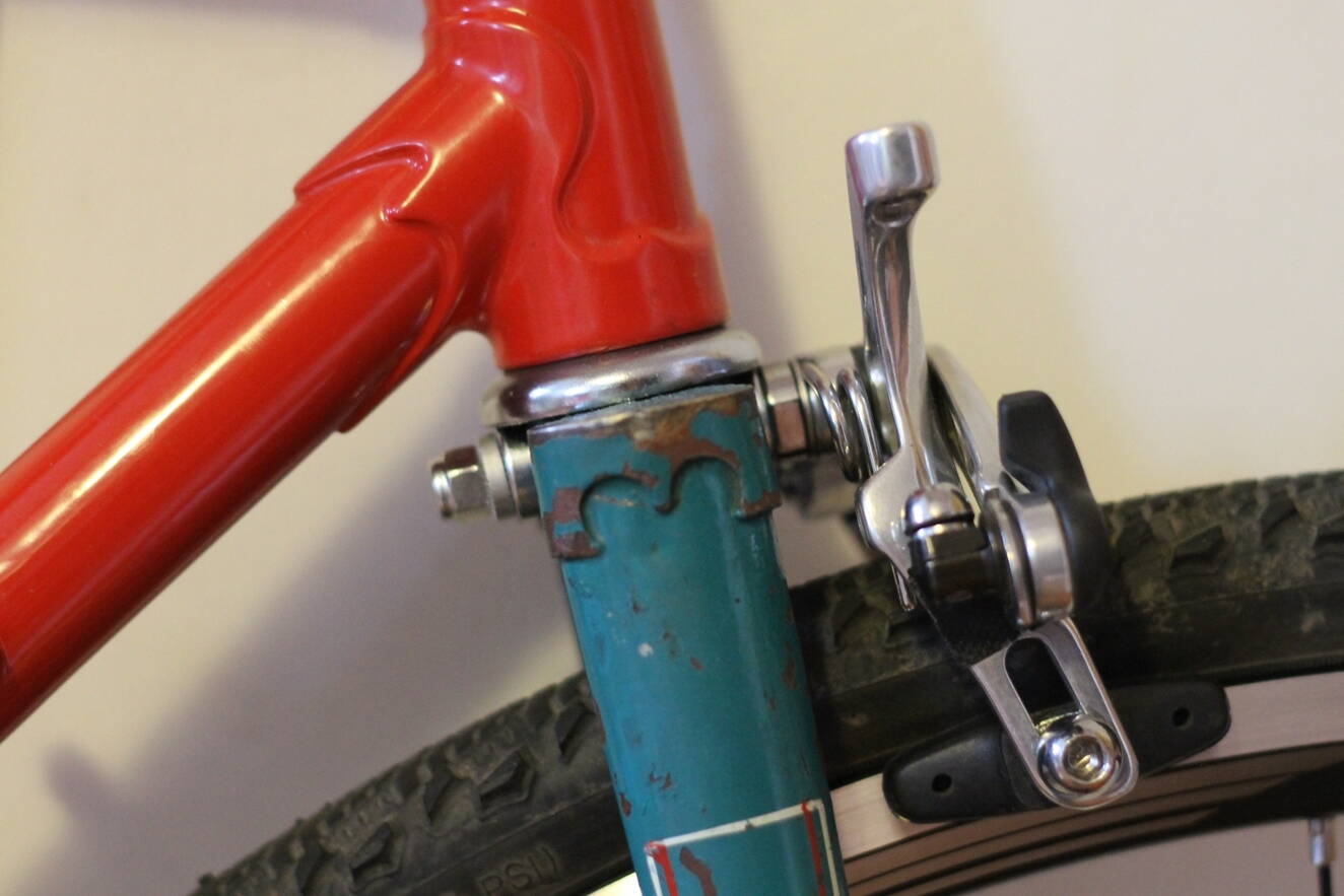Передний тормоз Tektro поменялся центральным болтом с задним тормозом Sora.