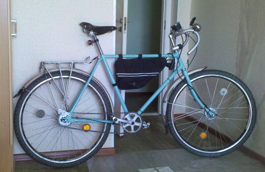 Комментарий к файлу: Передние дропауты. Крепления крыла нет. Приблуды, навешанные на втулку - это барабанный тормоз SA BF и механический спидометр, новый, куплен в обычном веломагазе.
