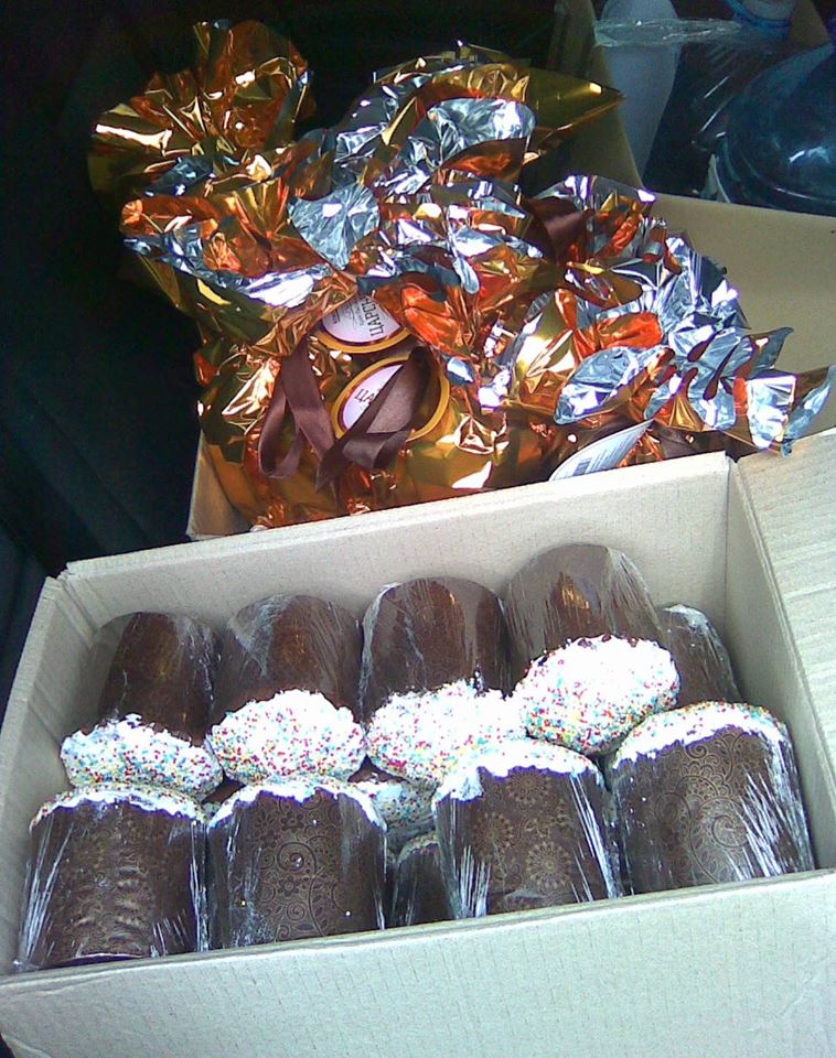 Договорился с директором супермаркета, что он до 11-00 быстро напечёт нам 107 пасочек по 250 грамм, обмакнёт их в глазурь и украсит присыпкой, завернёт в целофанчик и выдаст гарантию на 120 часов на употребление. Судя по лицу выдававших мне пасочки (а их было пятеро) диреХтур напёк быстро... Я вспомнил про сотрудников ДД и купил ещё 5 больших пасок....