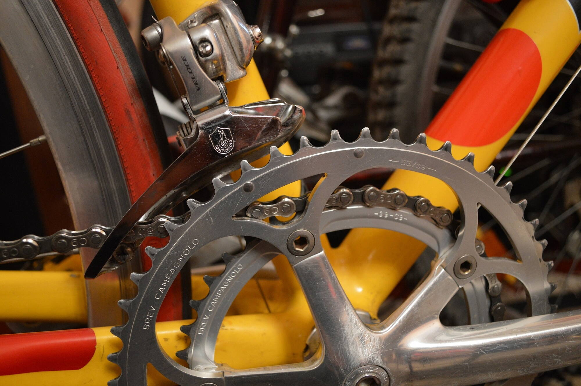 Вилка и большая часть навески - скорей всего, конца 1990-х. Педали вряд ли родные, просто цвет совпал.