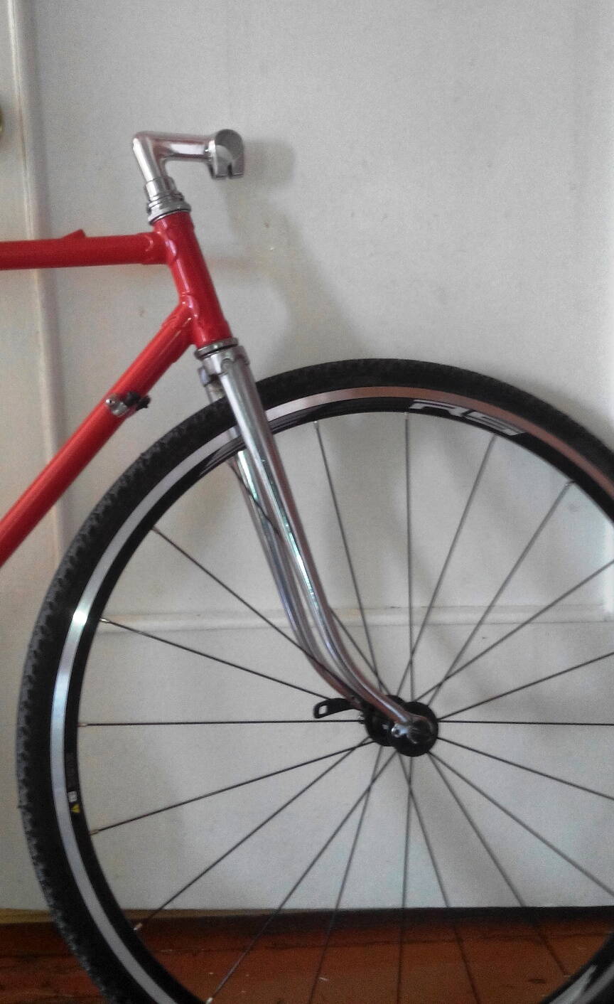 Именно из-за большого вылета (изгиба) зеленой вилки у меня так замечательно встают на нее тормоза Shimano Sora с маленьким ричем. Поставив же хромированую вилку я понял, что эти тормоза не удастся поставить на эту вилку, рича не хватит, даже если пропилить его по максимому.