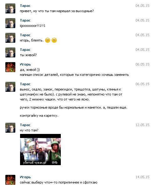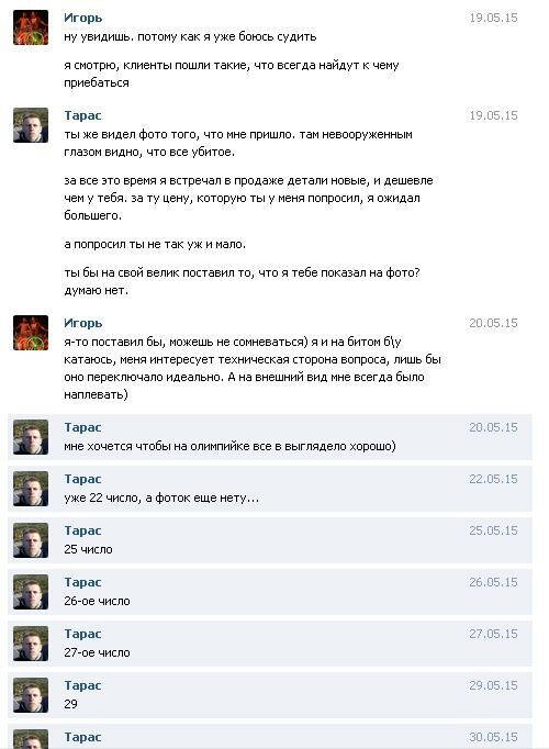 Не советую иметь никаких с ним дел http://vk.com/abenko .Куплял у него велосипед украину,без наложеного,получил вообще другую раму(гнутую) велосипед весь в люфтах и + велосипед без крыльев и багажника,деньги отдавать отказывается!!КИДАЛО!!!