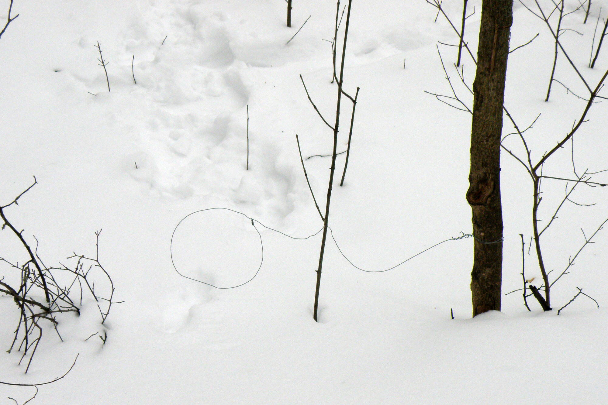 Пару лет назад в Старом Салтове нашёл такую же петлю прямо на звериной тропе - выбросил под снег подальше...