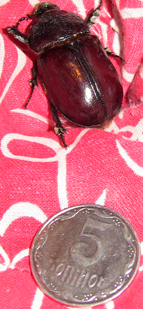 Это самка жука-носорога. Самец выглядел бы примерно вот так: