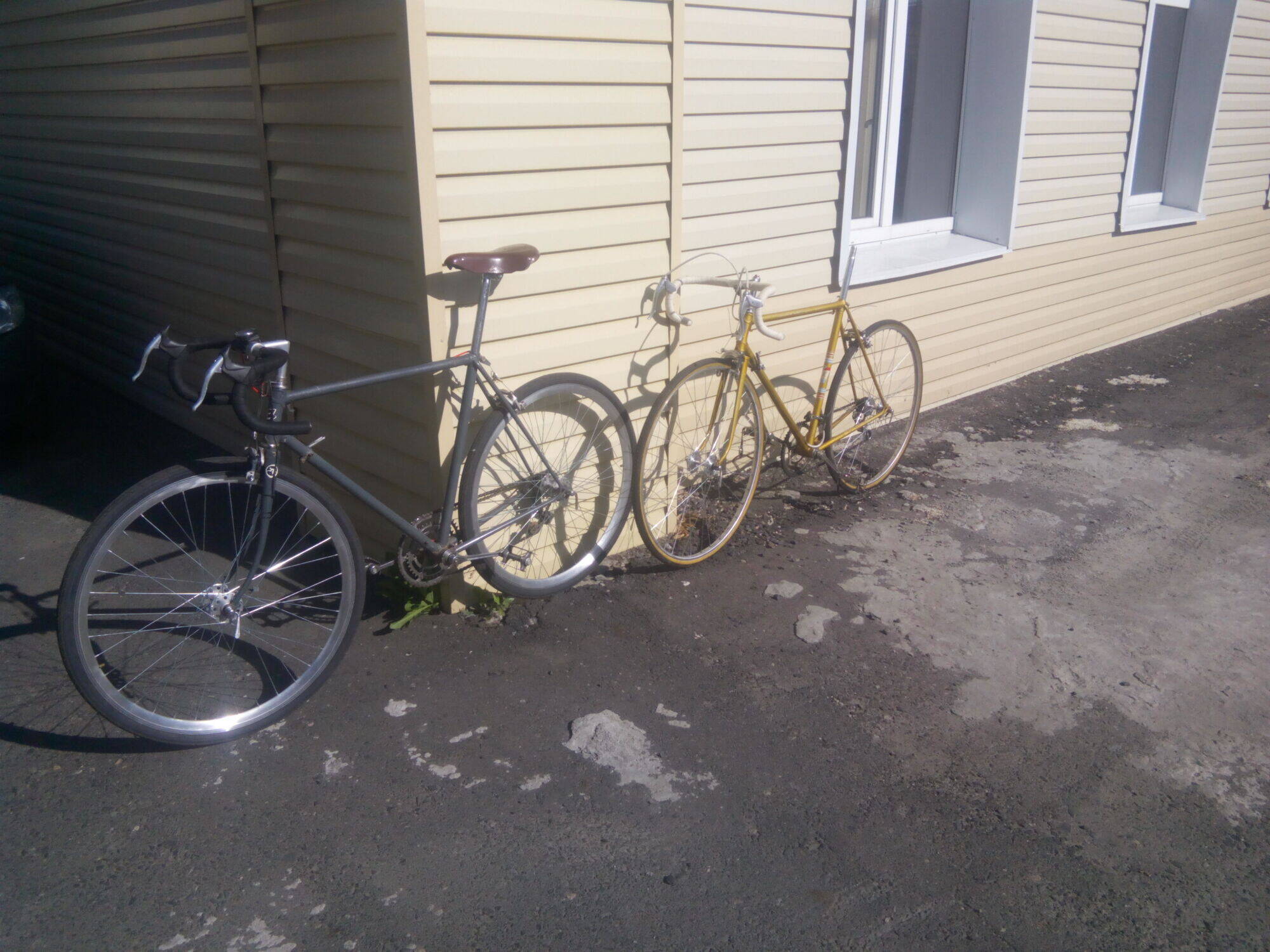 Хотелось поучаствовать на желтом на велодне в категории ретро, но не получилось- неожиданно уехали в Москву на соревнования. После нескольких поездок впечатления положительные. Ход гораздо легче чем у серого. Пока ищу раму бОльшего размера, от скуки, снял краску с колес на сером. Как только найду большую раму, серый отдам товарищу- пенсионеру- велолюбителю. Давно он на него глаз положил :smile: С поменянными ручками и тросами тормозит отлично.