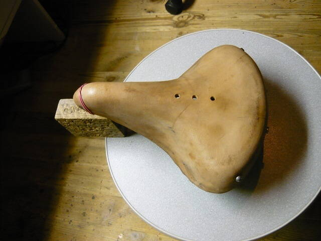 Спорить не буду в силу ничтожного опыта в этой сфере. Увлажнил немного , пробил дырки под каркас и для вентиляции, ничего не треснуло. Предварительно по-черновому закрепил покрышку на каркасе, пока кожа была слегка сыроватой установил на табуретке и периодически присаживался на седло, затем слегка выравнивал руками, придавая симметрию и желаемую форму. В итоге поверхность седла стала как бы слепком моей пятой точки