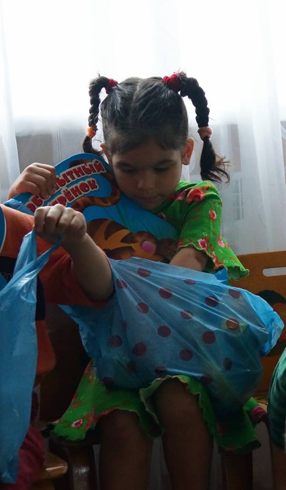 1) Детворе, которая будет принимать непосредственное участие в занятии (а это наши с вами малыши из зоны АТО (Краматорские и Луганские) - вручим как всегда сладкие наборы в пакетах.