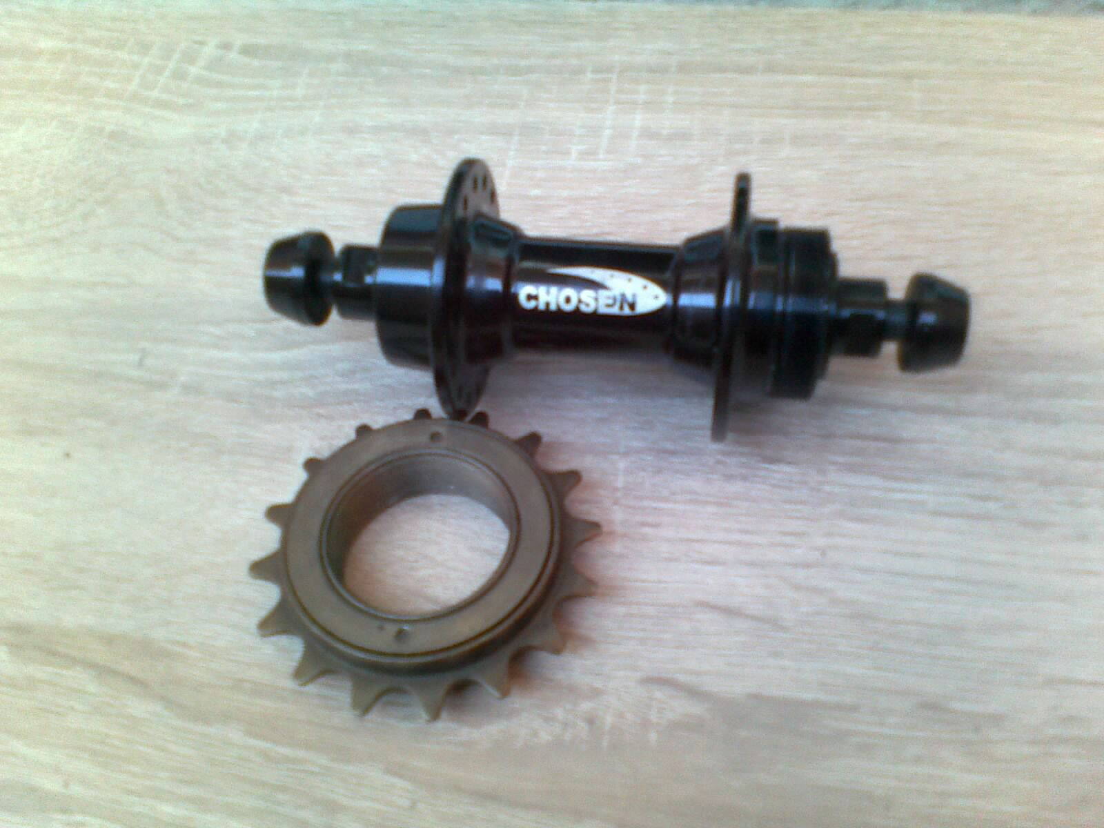 Заднее колесо: втулка Chosen A2015B-BOLT (BMX), трещетка на 16 зубов, обод Mach1 cfx 622*13c, Спицы Mach1 2.0*292, покрышка Rubena Syrinx v80 700*25, Камера Rubena 18/25 FV47