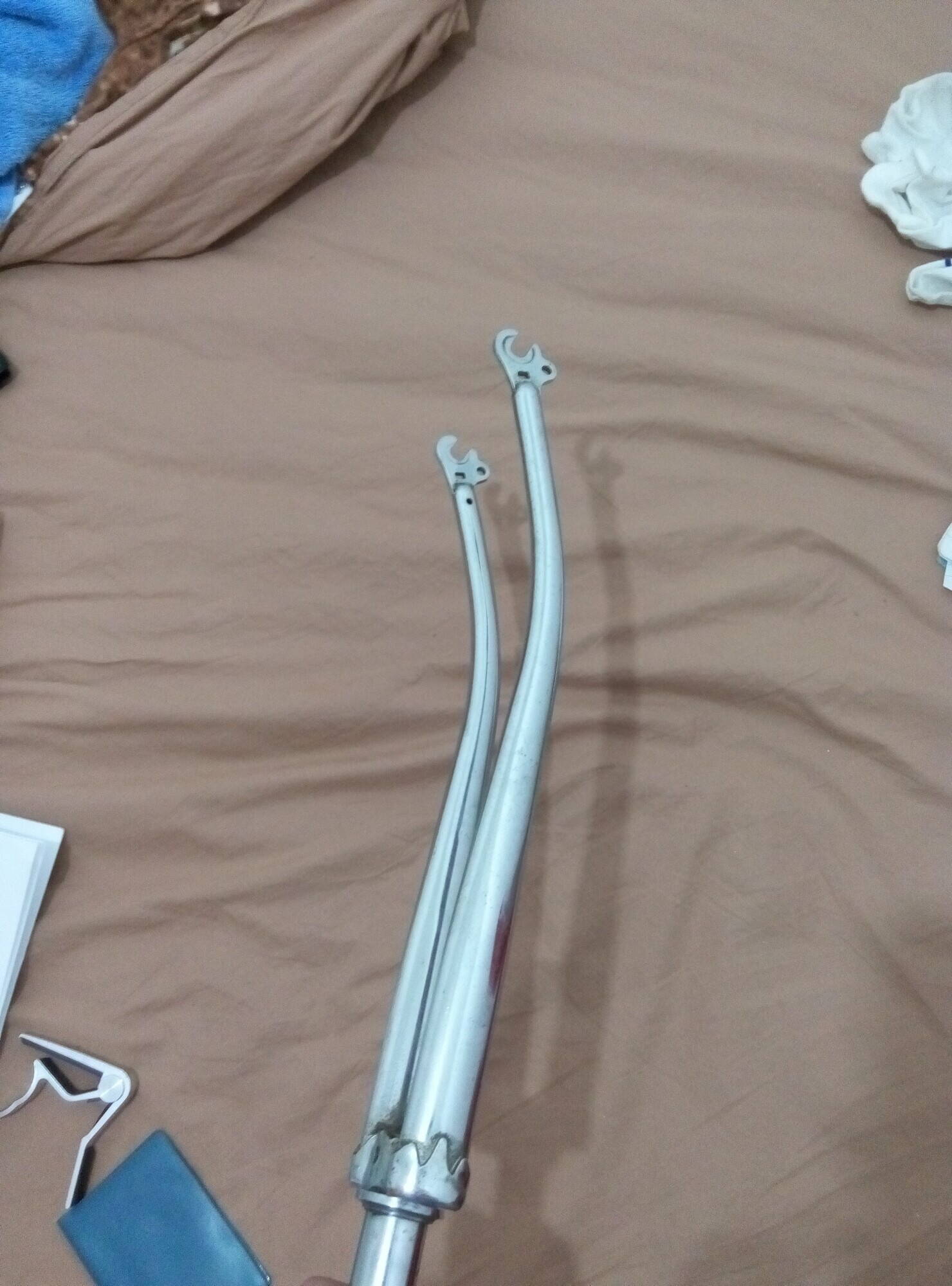 - Он ищет себе на замену своей вилки новую с длинным штоком под мою раму,а я в свою очередь отпилю шток у своей вилки под его короткую раму.