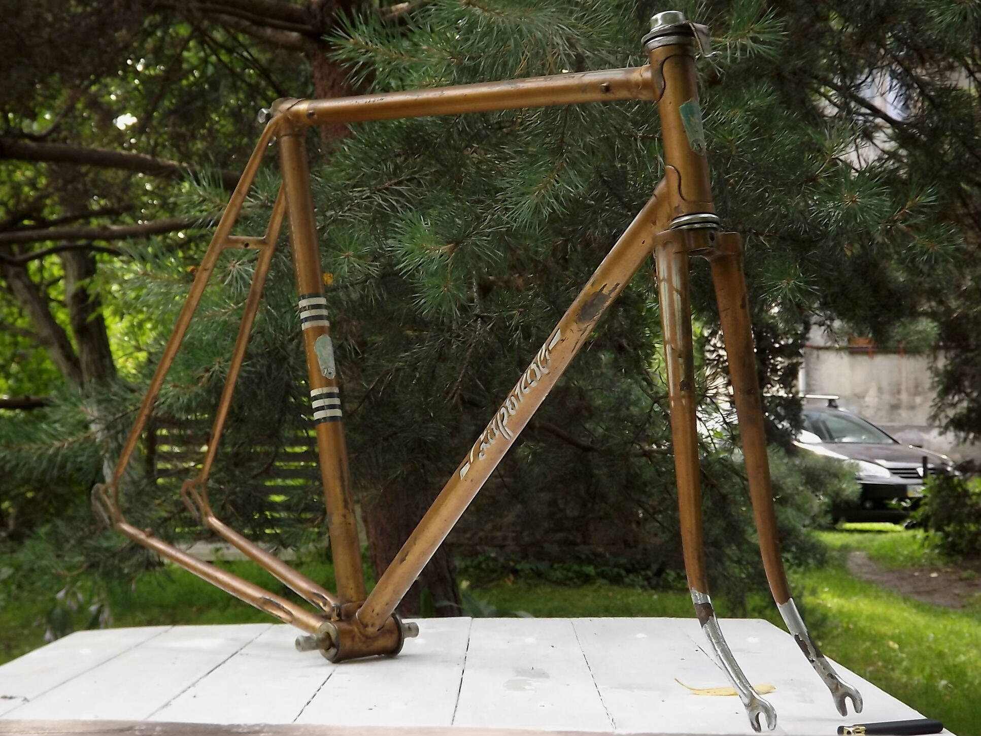 Експлуатувався просто в цивільному стилі, знайшлись деколі (знайти деколі ЛВЗ, думаю у Львові не проблема була) - вклеїв, мене б пустоти на його місці також дратували :yes: А не відповідність надпису "Харьков" і шильда "ЛВЗ", майстер виправив в свій спосіб ?! Я б напевно також би так поступив... :roll: Ну, що маємо раму від "Какой-то Черепахи" ?! :D
