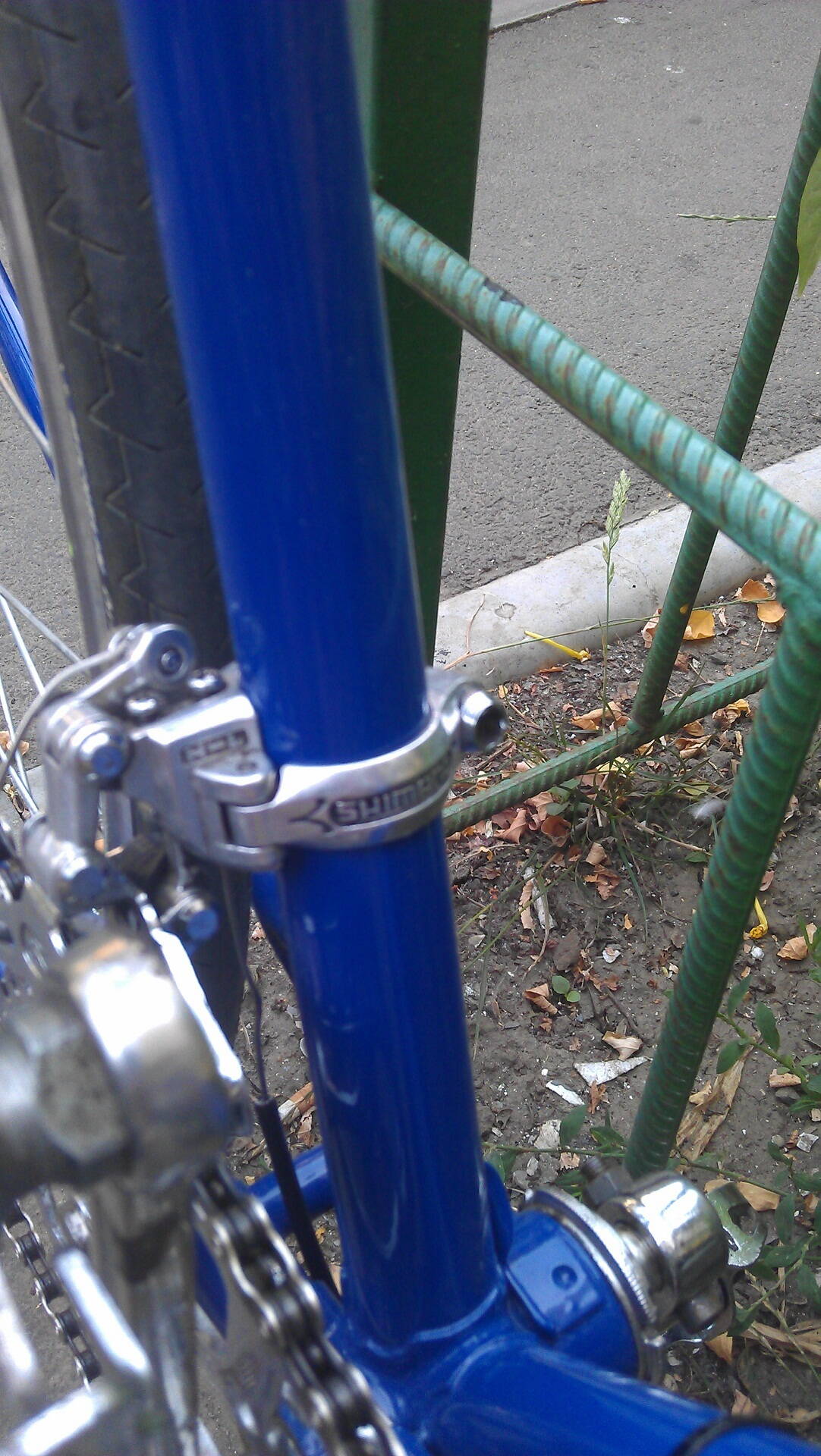 Передний переключатель Шимано или затянется без проблем или хомут будет большего диаметра тогда сделаете проставку под хомут.