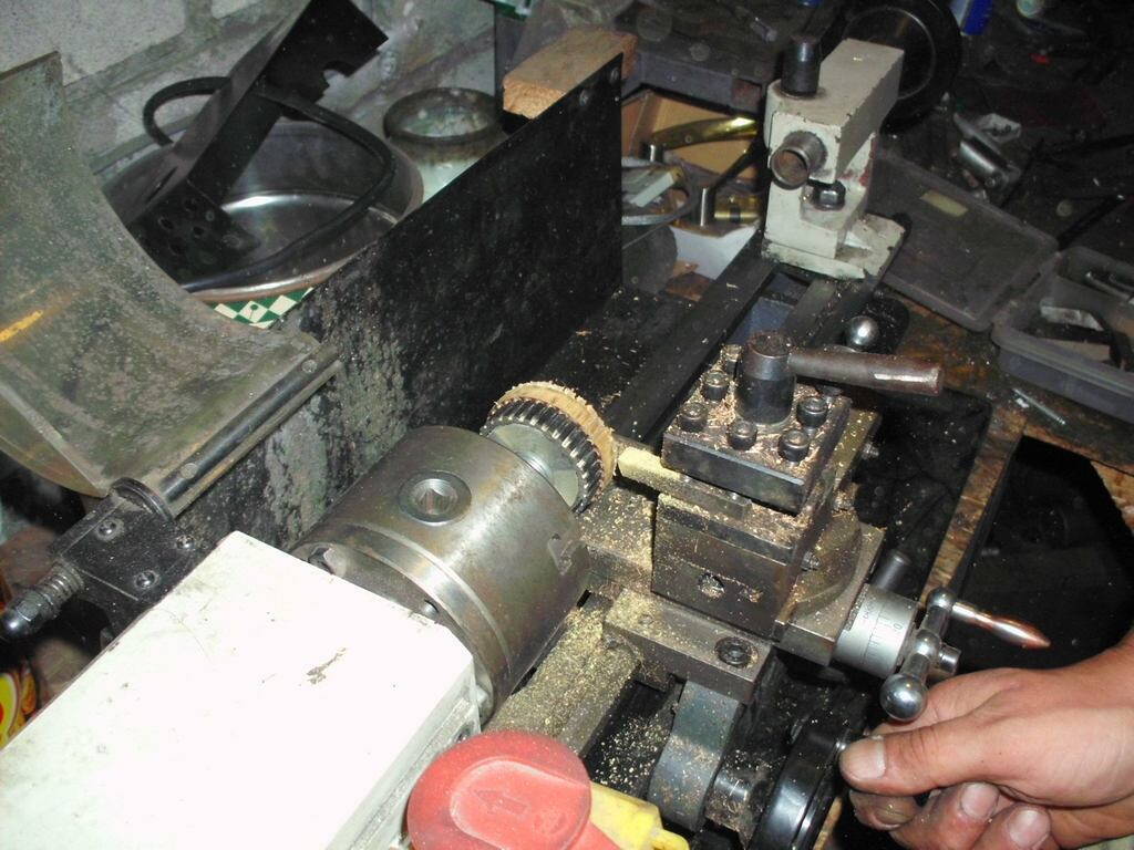 На том самом станке, для которого шестерня. Для этого его даже в розетку включать не пришлось :D :