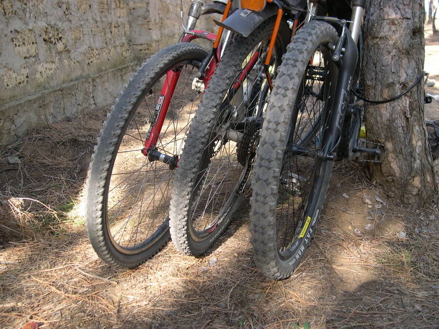 Ну, а в предыдущем сообщении про заднее все сказал, но за переднее забыл. В общем, стандарт в последних походах: сзади Schwalbe Marathon Dureme 28x1.60, реальная ширина 40-41мм, спереди Schwalbe Smart Sam 28х1.75, реальная ширина 44-45мм. Но опять же, колеса то 28-е, так что пятно контакта переднего колеса у меня сравнимо с байковскими "двухдюймовками". Когда-то уже забрасывал фотографию с гибридным колесом в окружении двух байковских с размерами 1.9 и 2.25 (или даже 2.3) - http://xt.ht/phpbb/download/file.php?id=226401&mode=view/39.JPG .