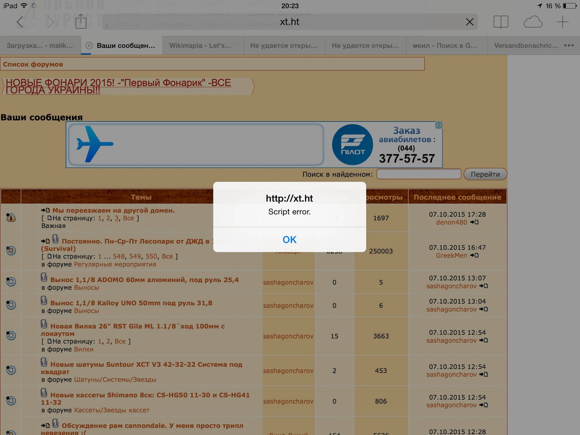 С айпада почти на всех страницах вылетает
