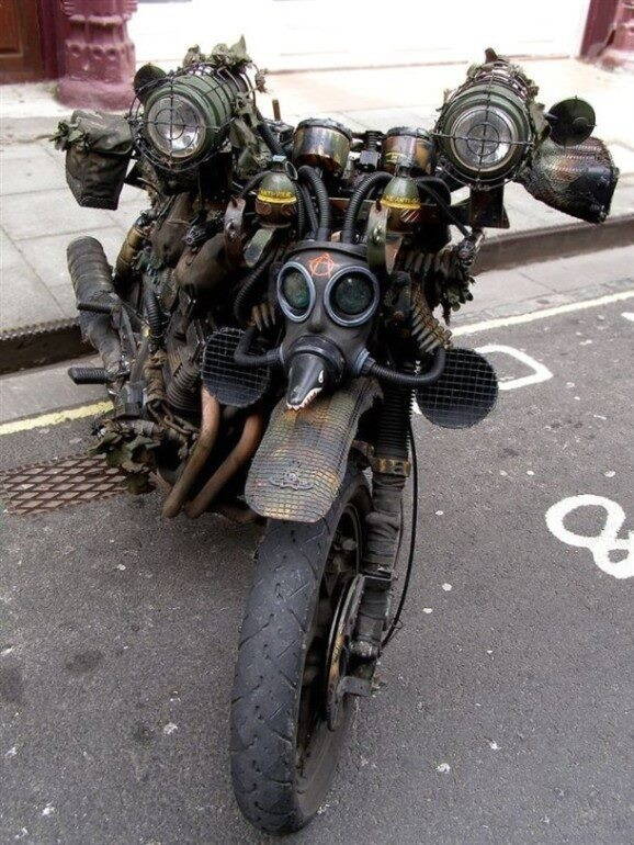 Комментарий к файлу: А Вот это конечно шедевр, давно у мня на рабочем столе.Переодически открываю. вдохновляюсь. Апокалипсическое направление стимпанка.Но на мотоцикл можно навесить стока железа,педали на нём не крутить, а с велосипедом надо всё соизмерять.