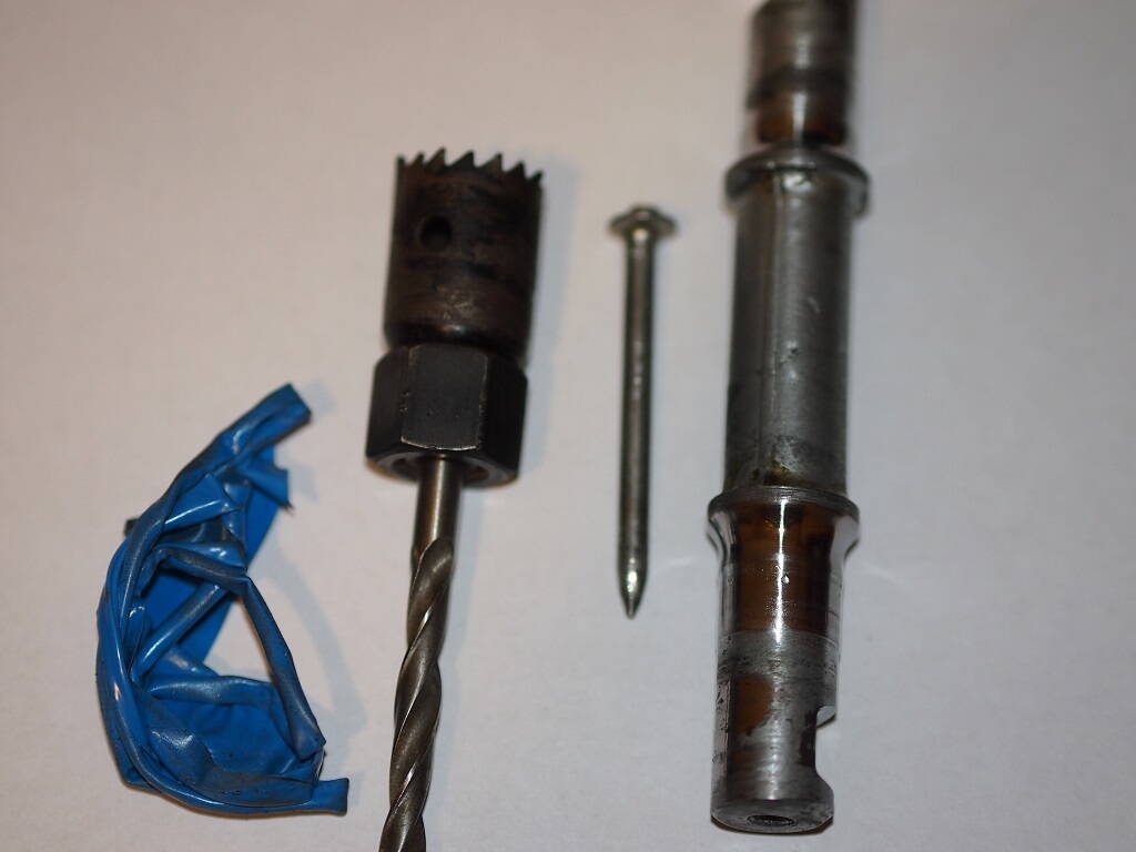 Приспособы: наждак 80, 400, 2000. Дюбель гвоздь, тиски, коронка по дереву, дрель.