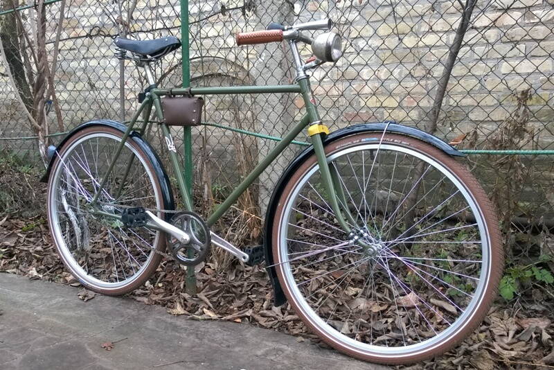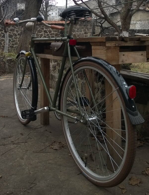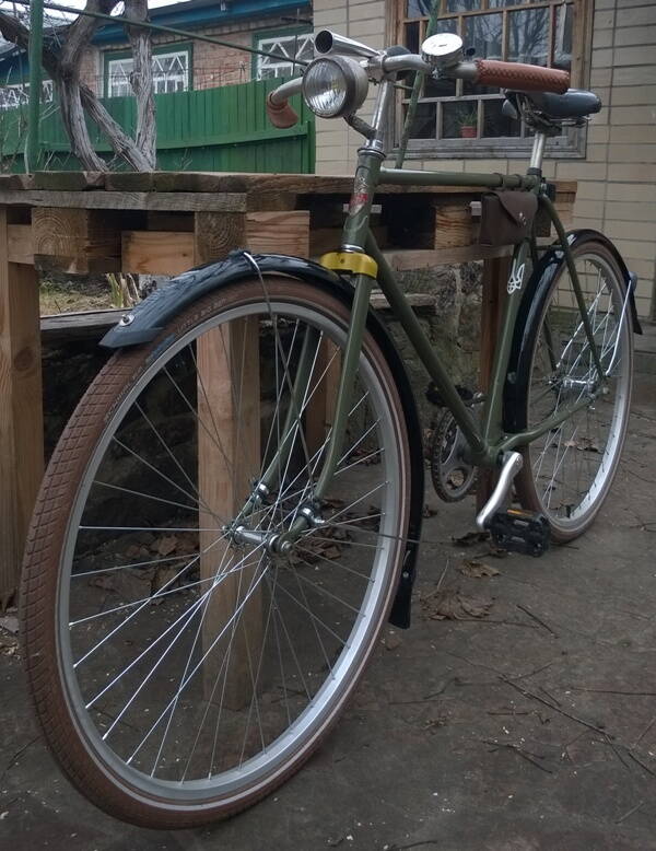 Ну и похвастаюсь звоночком. Из германии пришел. Звон просто обалденный. Ну и фару примерял заодно. На покраску сдам потом уже все детальки сразу. Единственно думаю все таки спереди крыло укоротить сантиметров на 5-6. Ну и флажочек металлический бы туда поставить а-ля 50-е. Никому не встречалось что нибудь наподобие? ну и дудка теперь вроде как лишняя...