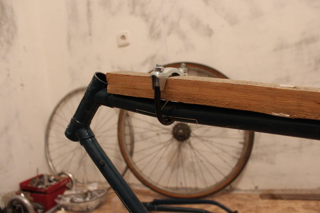 Я той верёвкой делаю оборота 4 вокруг рамы и палки, рычаг вставляю в один из.. эээ..."средних" оборотов.