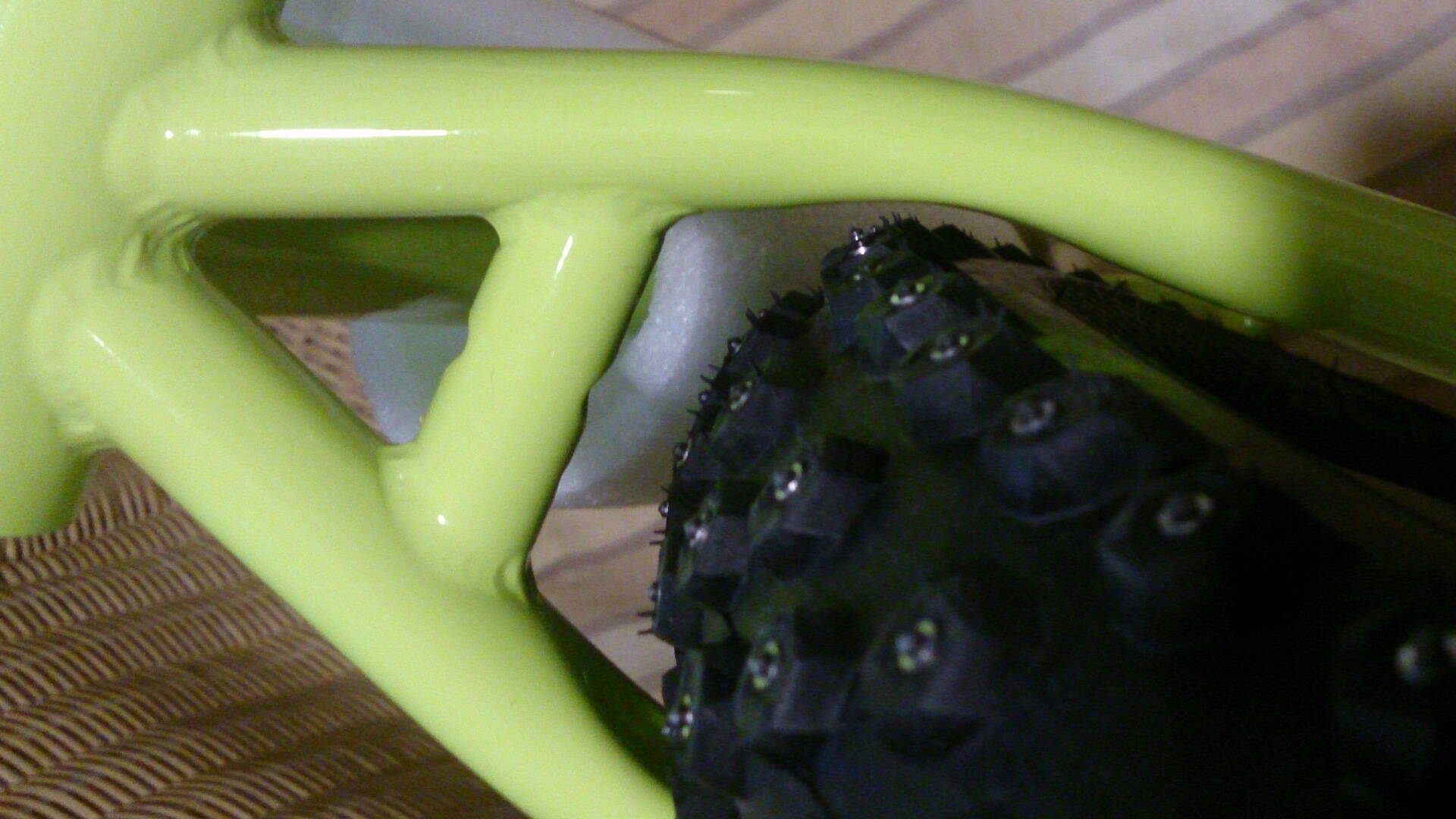 На некоторых рамах на нижних трубах с внутр. стороны делают вмятины, чтобы расширить грязевой зазор.