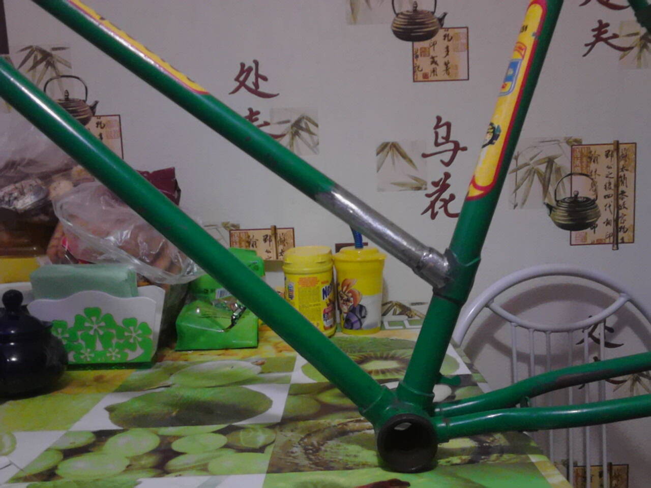 Доброго вечера, да труба :sad: думаю сварка, вырежу 10см самого гнилья, подберу трубку, внутрь тоже трубку, во внешней отверстия и с разумным охлаждением, чтоб припой не потек, должно получится, потом сам покатаюсь, с бордюр попрыгаю :yes: если все гут, в эксплуатацию. вилка гнутая, сначала сварю раму, потом выправлю,а то оторвется еще. шатун один гнутый аж в двух плоскостях, год ,вторая цифра закрыта на половину верхним пером то ли 6 то ли 8 первая цифра 8 бедная комплектация?