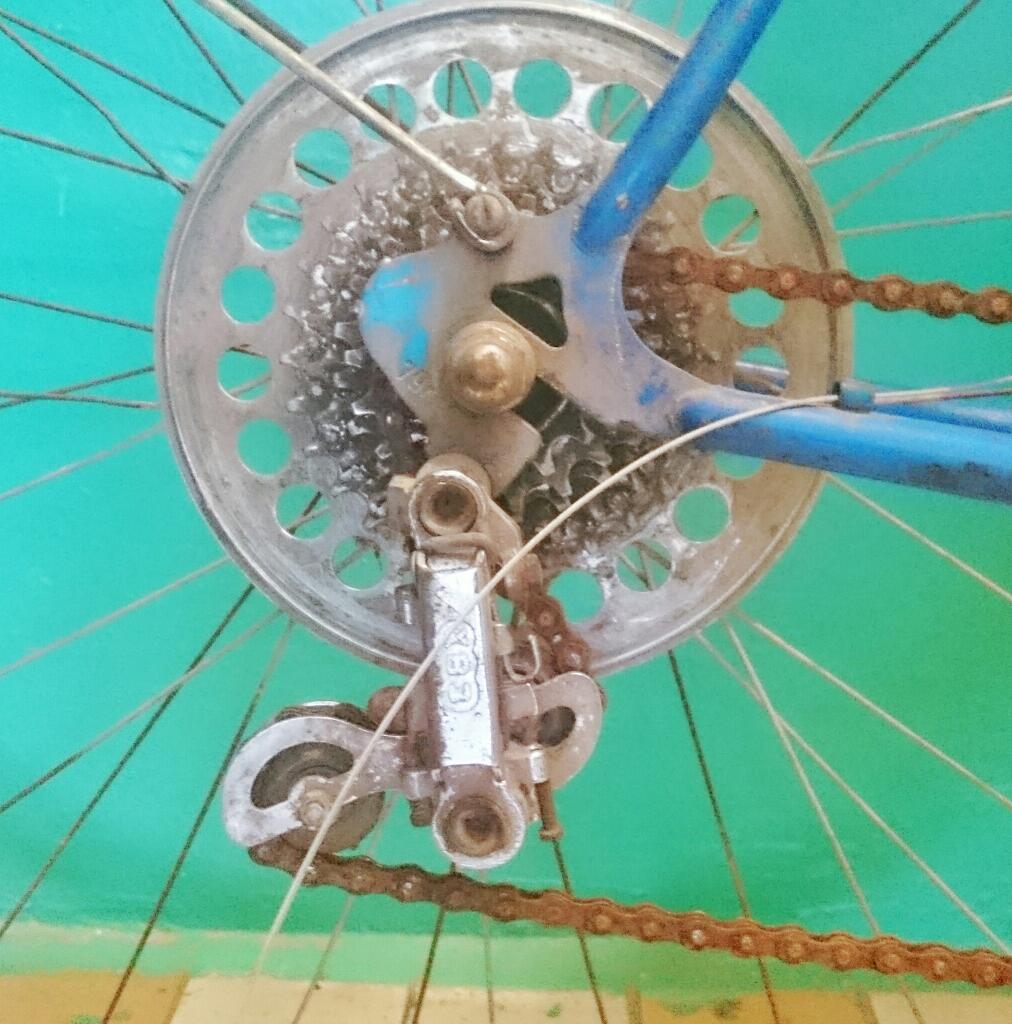 3.суппорт со следами ремонта, если присмотреться виден гвоздь)))) из за этого ремонта внутри как то неправильно все двигается....менять? Или мастерить родную клепку?