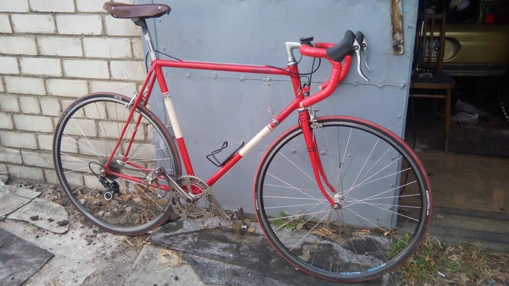 С этим фреймом тоже оказалось не все гладко. Качество сборки сильно отличается от красного сз. Были еще некоторые вопросы... Я написал продавцу на Украину. После долгих переговоров им было принято решение выслать мне в качестве компенсации буржуйский фрейм тоже 61 ростовки. Но сз есть сз и основной вел я решил собирать на нем. Опять занялся поиском родных запчастей. По объявлениям все с пометкой сз стоит в разы больше. отчаявшись- купил опять на Украине комплект переключателей campagnolo chorus. Этих денег мне не хватало даже на один задний переключатель сз. Просиживая вечера за поиском зп наткнулся на объявление о продаже хромированного фрейма.