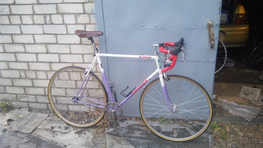 вилку с него пришлось продать вместе с бело- синим сз. местным товарищем было подарено седло и педали с туклипсами.на Украине был купле подседел 26.4. система тоже досталась от итальянца которого собираю другу.