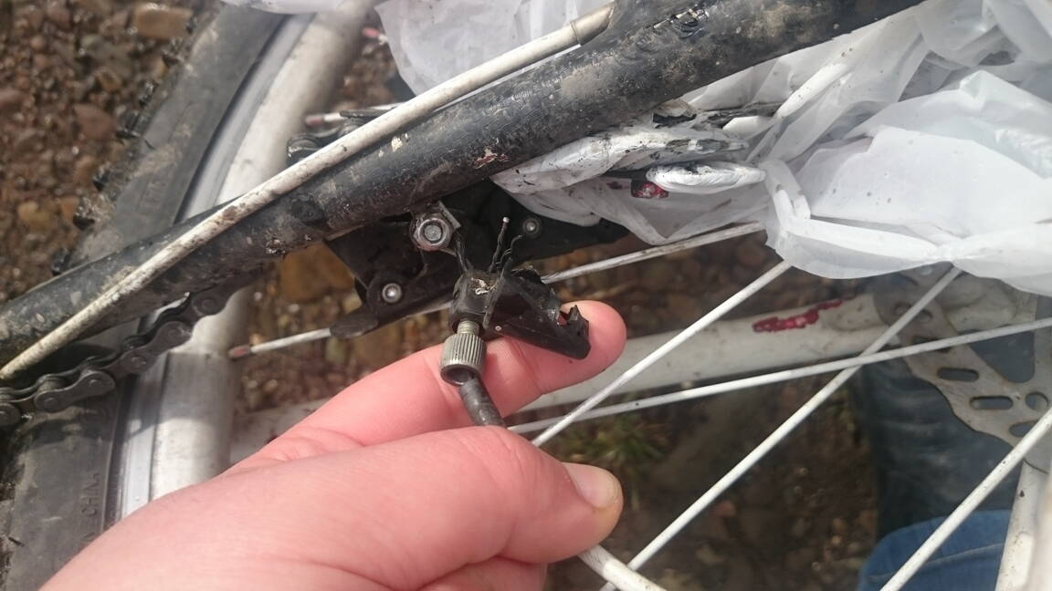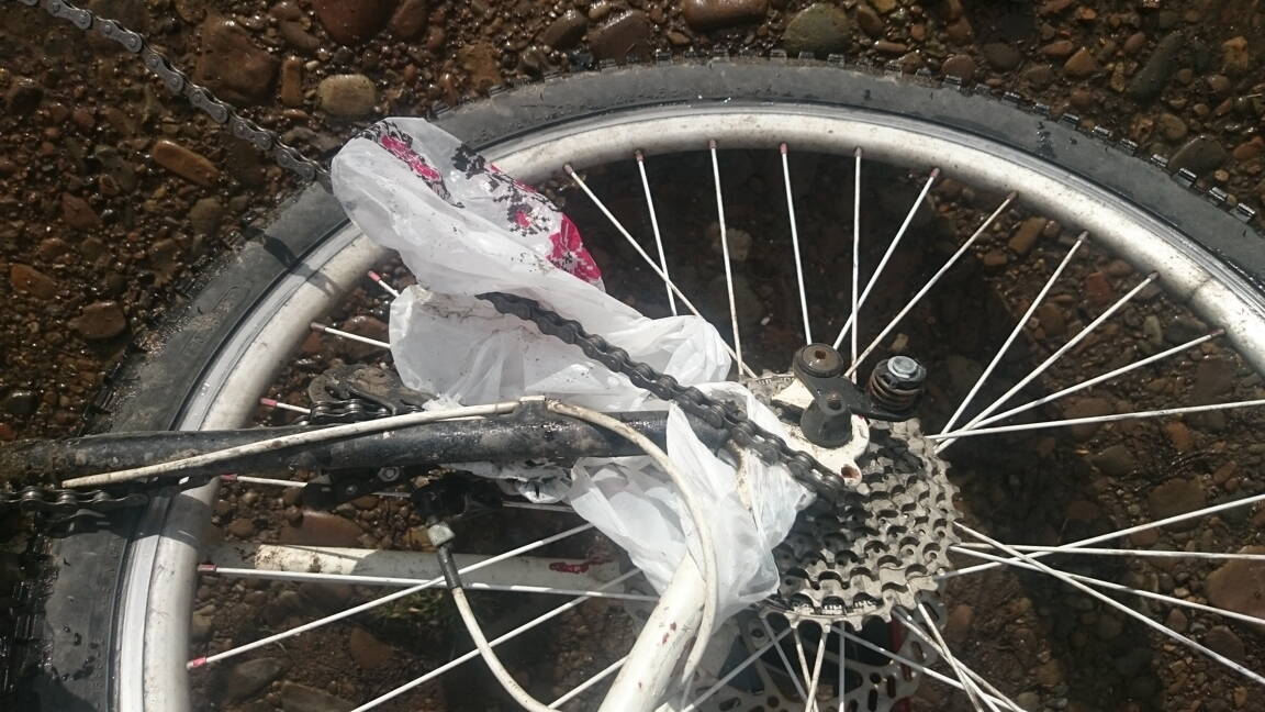 я його не замітив і продовжував рух допоки не почув хруст і заднє колесо заблокувалося