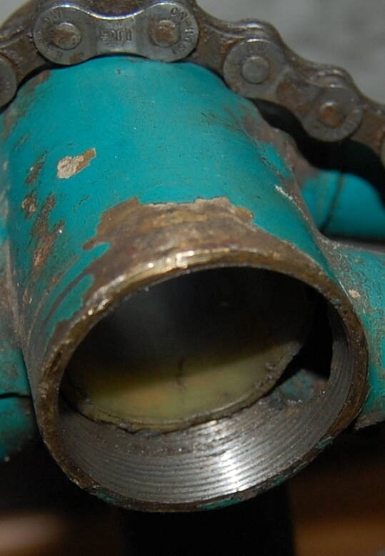 Вчера снял все навесное. Добрался до каретки. Контрогайку выкрутил, а чашки - нет, из-за отсутствия инструмента (хотя провернуть на 30 градусов удалось). Сильно молотить отверткой не стал, уже поздно было. Продолжу в выходные, может до этого времени ключь подходящий найду, ну или газовый у кого попрошу.