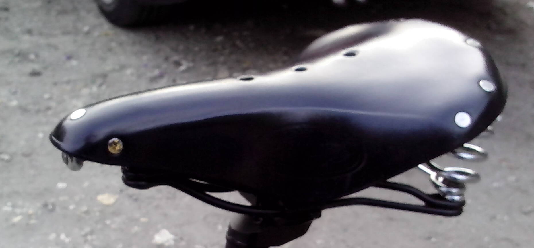 Прокатив несколько недель, пришел я к выводу, что УК сидение меня не устраивает. На тот момент, изрядно начитавшись букв в ветках этого форума, пабликов вКонтактике и других полезных заметок, я понял, что точка"опоры" будет себя чувствовать лучше на изделии, которое послужило прототипом для всех седел УК, ТУЛА и т.д. я купил за 50$ BROOKS B-66. Его состояние так же было далеким от идеала, но полная разборка, отмачивание в лимонной кислоте, правка чепрака и покраска принесли достойный результат.