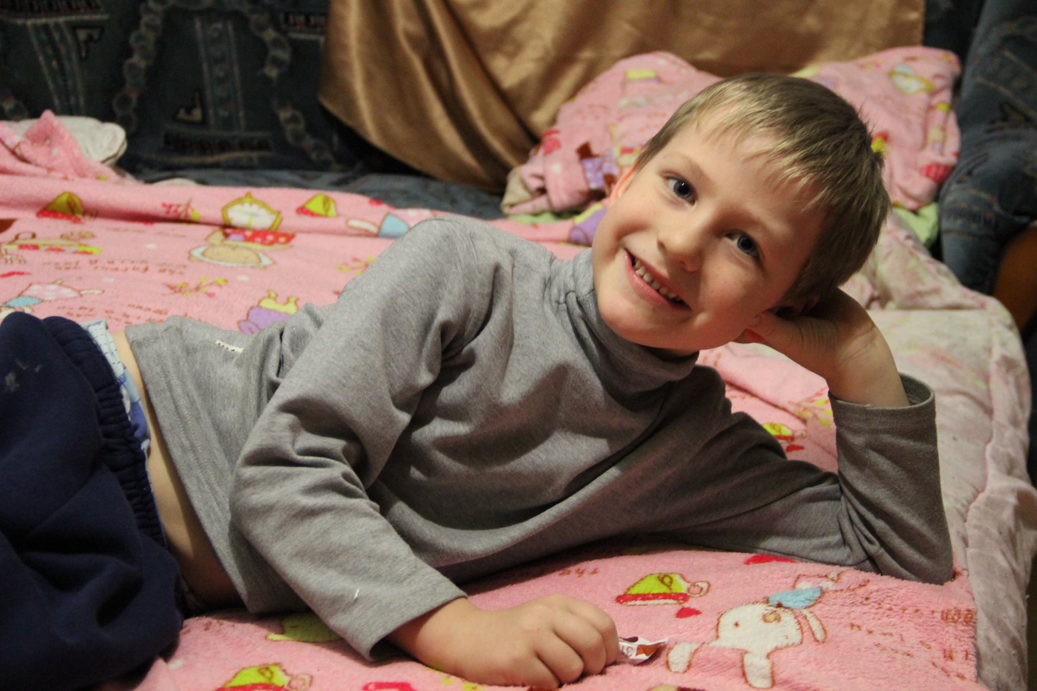 Дениска - недавно хлопцеві виповнилося три роки. Це в буквальному сенсі слова світла голова. Вся його сім'я хворіє на туберкульоз. Хлопчисько дуже сприйнятливий, неймовірно чуйний на увагу. Сильно помітно, що йому хочеться розуміння і співчуття (саме він, поставивши собі шишку в колективній бійці, відразу примчав за розрадою). За 2 роки його перебування в лікарні ніхто так і не відвідав, хоча більш ласкавого і безпосереднього дитини в групі, мабуть, складно знайти.