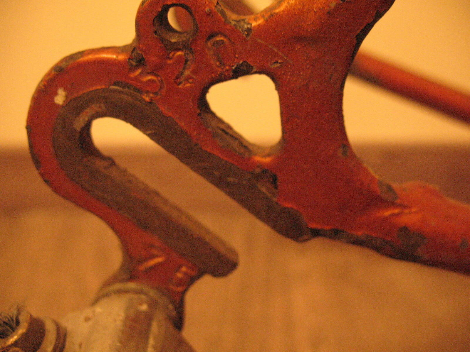 Седло вообще зачетное - слегка потерто в задней части, но по всей поверхности родная краска. Кожа твердая как фанера, есть небольшие пятнышки коррозии в металлическом носике и следы черной краски на рамке :shock: подседел и замок как новые. С седлом работы меньше всего будет :D А вот над рамой придется потрудиться. Сегодня утром при посмотрел при дневном свете - похоже что вскрывали лаком, есть потеки местами. Наверное таки перекрашу, но в родной цвет и позже. Пока буду собирать компектующие.