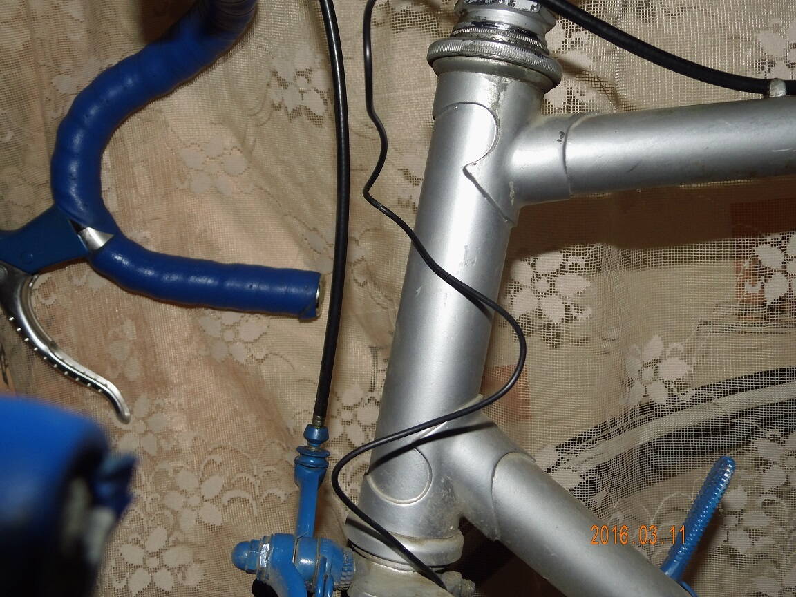 На веле стоят, если я не ошибся, весьма приличные шоссейные контактные педали, хорошие колеса, похоже и система тоже что то приличное. Кое что стоит поправить - вынос вытащен слишком высоко - это опасно. Тормозные ручки стоят весьма низко, под основной хват в дропах - сейчас так ставят, когда хотят сохранить ретро стиль, а современный вариант - выше, с основным хватом на тормозных ручках - и это удобнее. Тормоза, загаженные краской, стоит отмыть, и заменить рубашку заднего переключателя - она и подломлена и коротка - так что тросику это мешает ходить гладко. Седло старое, но хорошее, может его стоит просто перетянуть?