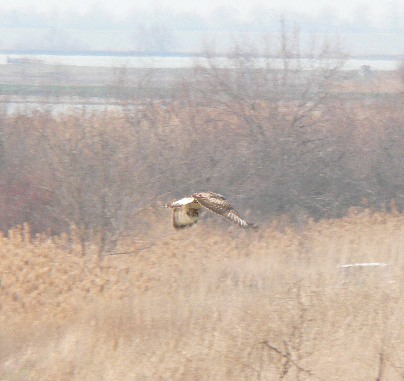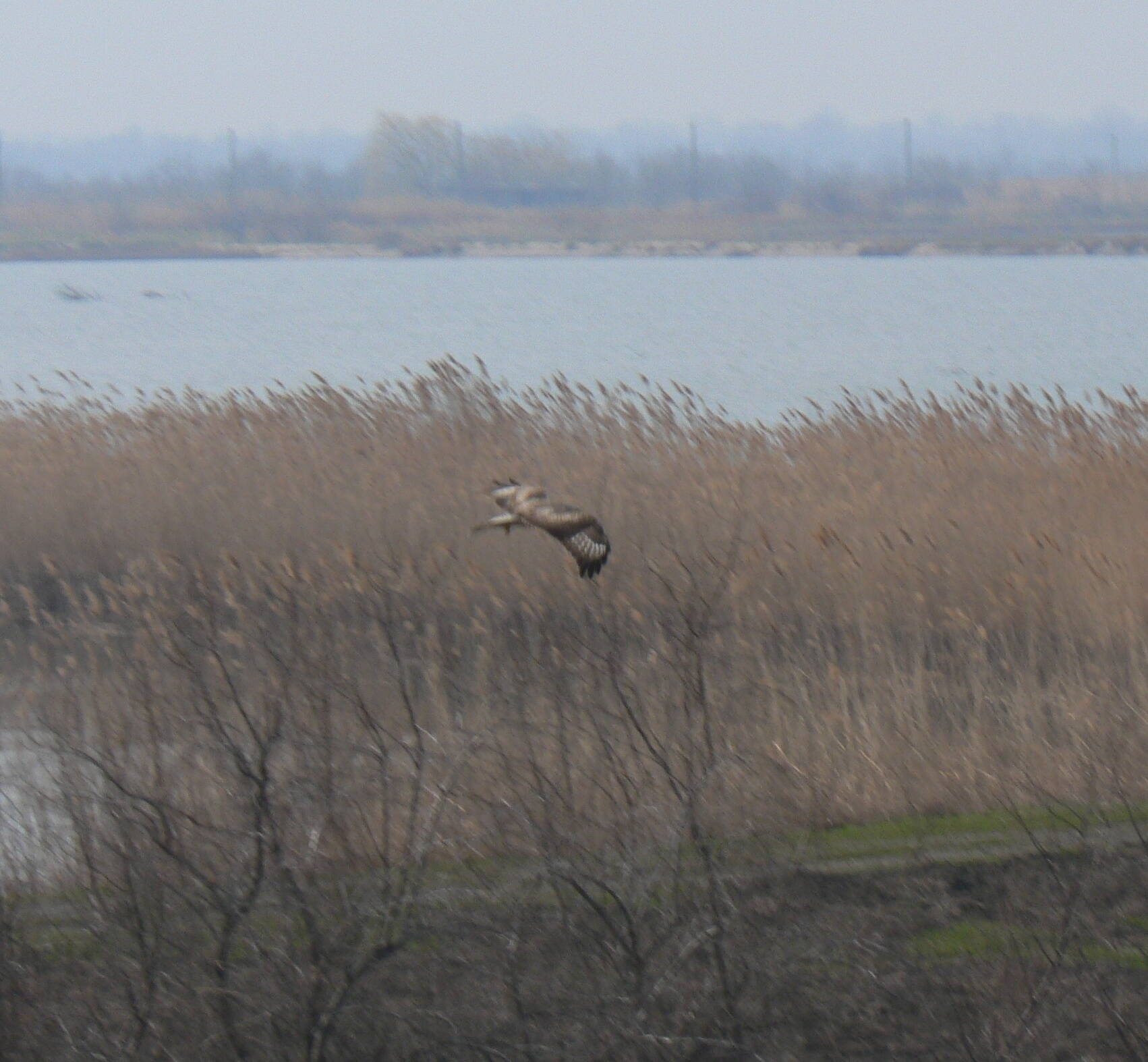 Дальше мне встретился орёл, нарезающий круги над камышами и заросшими молодой травой склонами дамбы.