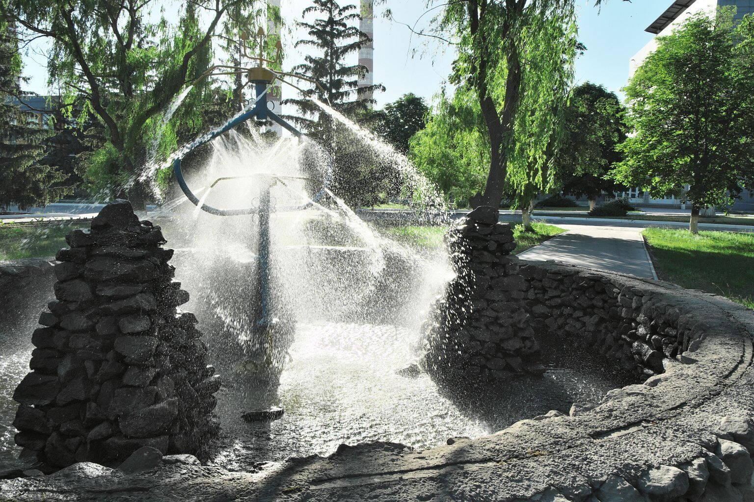 Собственно, данная конструкция - скорее всего просто декоративный элемент. Сам фонтан-охладитель (или таки увлажнитель?) чуть поболе габаритами, и находится рядом. Там, кстати, часто бывает много рыбаков :)