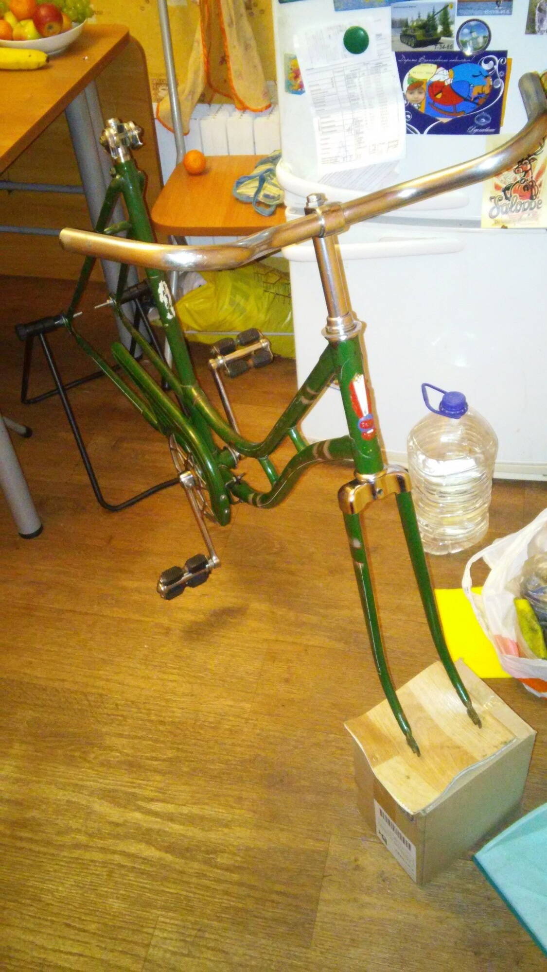 - отсутсвует??? либо без следа затерта надпись "Харьков" на раме. Если надпись затерта ногами ездоков (рама в этом месте достаточно оголенная от ножек катающихся) то весьма тщательно и бесследно. Владислав К предположил что может быть ее и не было этой надписи.... Вообщем жду комментарииев, друзья.